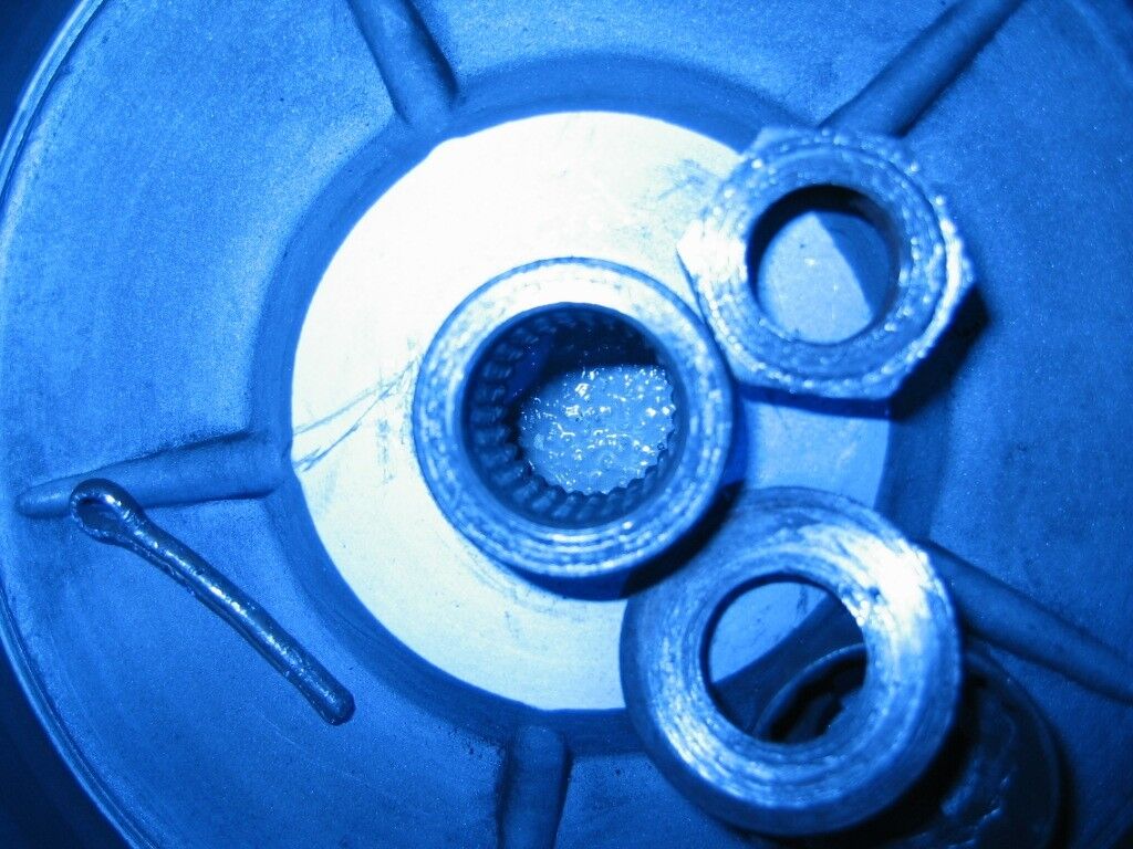 Im einem anderen Thread habe ich gelesen, dass das eigentlich nur passieren kann, wenn die Trommel nicht fest genug mit der Hauptwelle verschraubt war. Tatsächlich siehen die Mutter und die Unterlegscheibe ziemlich abgeschabt aus.