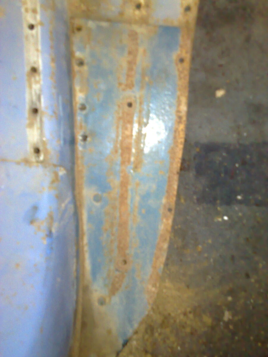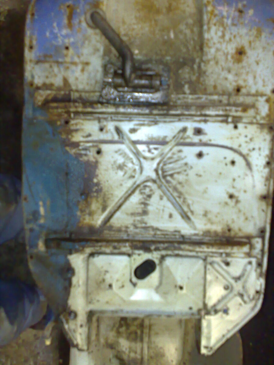 Das Trittblech muss wohl gebrochen gewesen sein, da der Vorbesitzer "fachmännisch" ein Stück Blech nach Augenmaß, zugeschnitten und mit dem alten Trittbrett verschraubt hat (siehe Bilder).