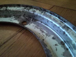 Soo jetzt mal weiter im Prozess :-4, Heute hatte ich zwar nicht wirklich viel Zeit aber die Grundplatte vom Schwingsattel und den Felgenkranz fertig bekommen. Die Felge ist mit Abstand das schlimmste Teil an der Vespa in Bezug auf O-Lack. Viel ist abgeblättert und ich musste relativ viel nachlackierte Farbe wegkratzen. Trotzdem ist das Ergebnis wirklich gut geworden m.M.n.