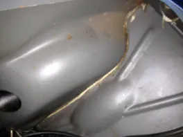 Ich habe mir überlegt, dass mir die Patina eigentlich recht gut an dieser Vespa gefällt, und ich den O-Lack wieder freilegen, aufbereiten und versiegeln könnte. Nur die Unterseite des Trittblechs scheint mit ein wenig arg mitgenommen zu sein. Ich denke mal dass ich hier den Rost so gut als möglich entfernen werde, und diese Stelle neu lackieren werde...