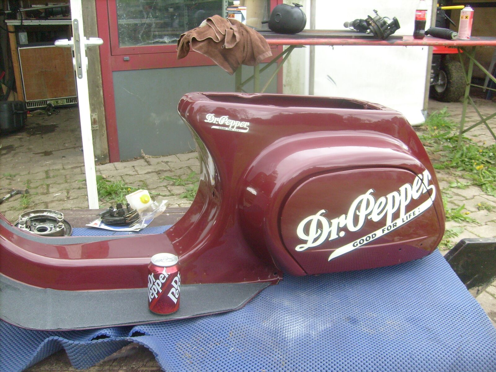 Habe meine PK 50 XL Elestart neu aufgebaut den Rahmen Sandstrahlen lassen und dann alles mit Ep grundiert und Hübsch lackiert sie wurde natürlich komplett zerlegt dafür und schön wieder zusammen gebaut es fehlt leider noch die richtige Sitzbank im momment ist der Orginale Klotz drauf .