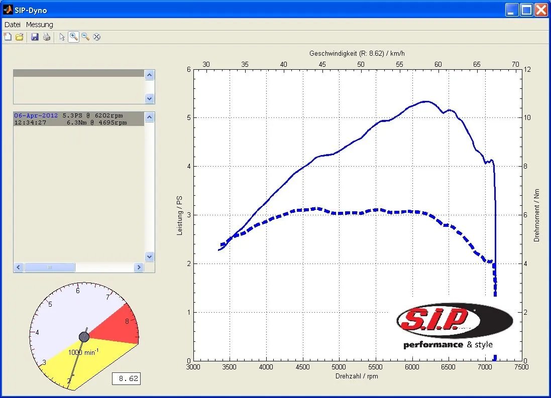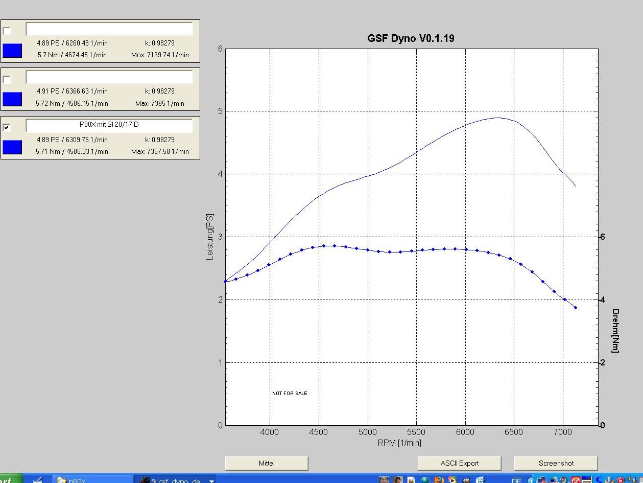 Damit kommt die P80X, gemittelt aus einer Hin- und Rückfahrt auf 5,5 PS und 6 Nm, die Cosa 200 auf ca 9,5 PS und ca 13 Nm. Das scheint nicht ganz realitätsfern.