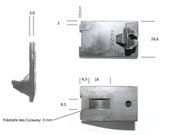 ich habe die Frästiefe des Cutaways an meinem .8 er Schieber gemessen und im Bild oben nachgetragen. Sie beträgt stattliche 3 mm ![]()