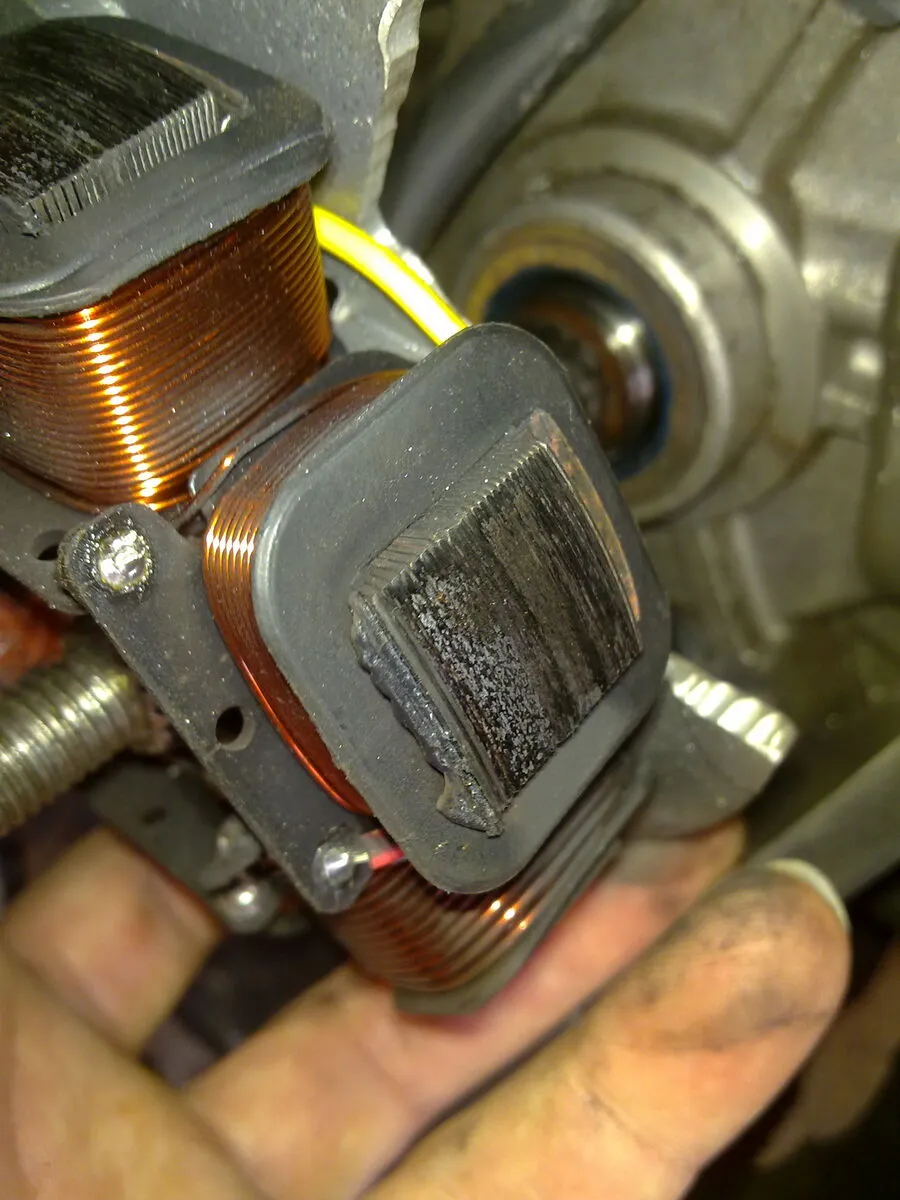 2, 3 Mal lies sie sich dann wieder starten und ich kam an mein Ziel. Am nächsten Tag sprang sie wieder sauber an und lief etwa 3 km rund. Dann ging sie das letzte Mal aus...Ich schob sie daraufhin also zu einer Werkstatt die mir sagte das die Ankerplatte kaputt ist, dieses Teil aber nicht mehr zu kriegen sei und überhaupt an dem Model eigentlich nichts zu machen ist.