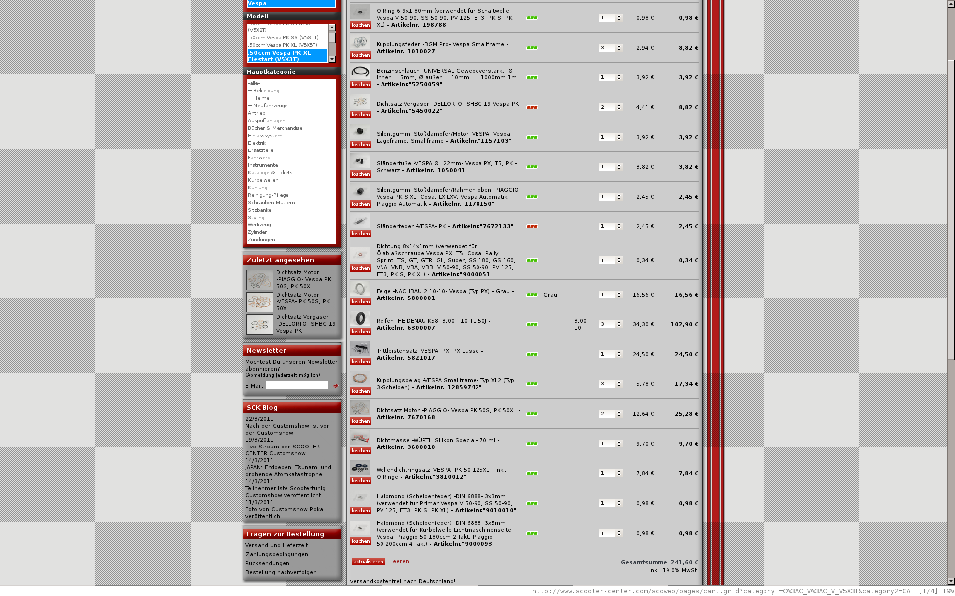Hab mir mal ne bestellliste fertig gemacht, da ist denke ich mal soziemlich alles was ich brauche. Den wellendichtringsatz werde ich wohl bei SIP bestellenb müssen, bei SCK sind keine maße angegeben. Den satz den man da in der liste sieht, der fliegt raus, kann man leider nix machen