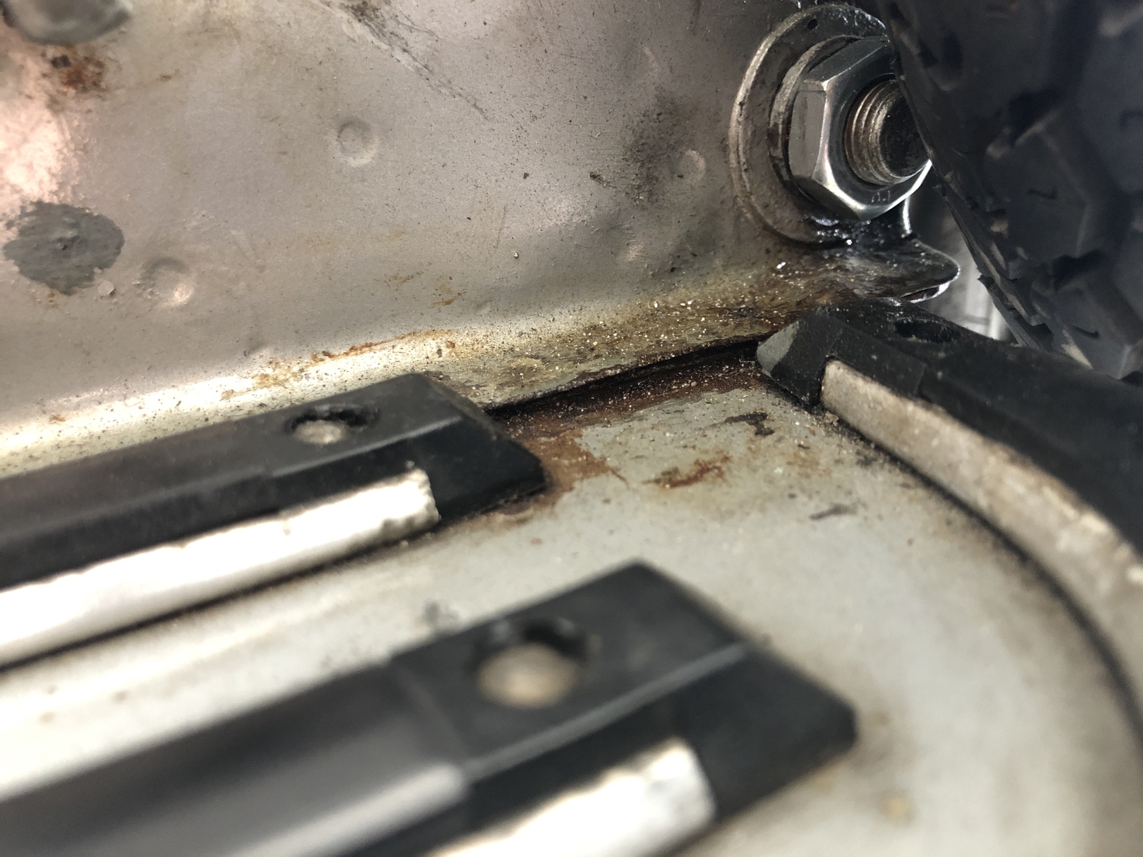 Einer Sache jedoch kam ich bisher nicht wirklich bei und das ist die Korrosion am linken Trittblech hinten. Auf der rechten Seite ist komischerweise kein Rost.