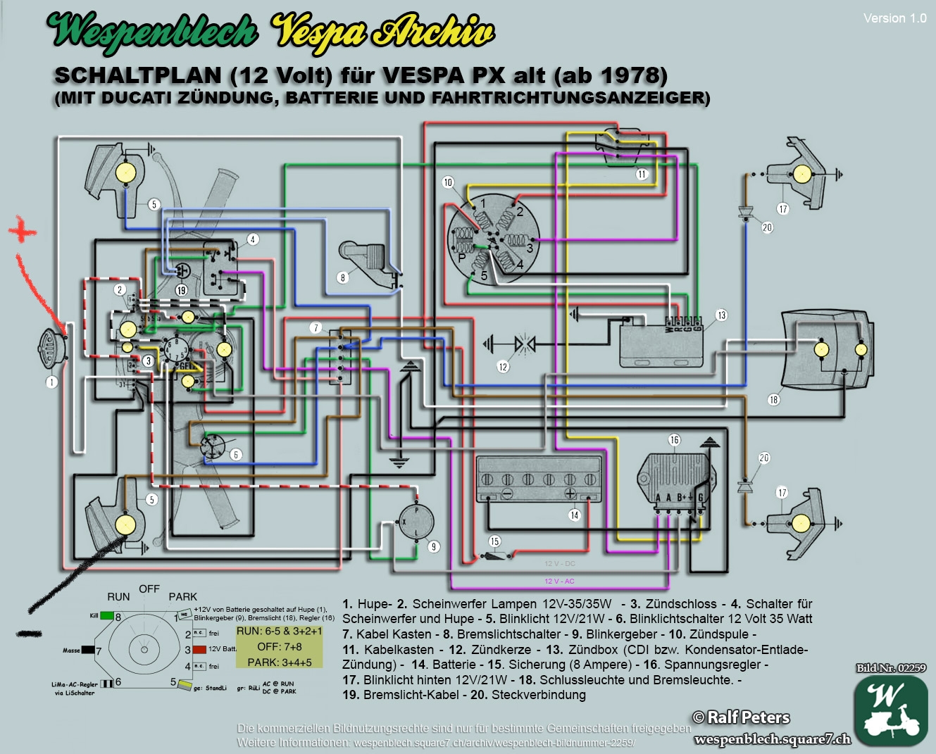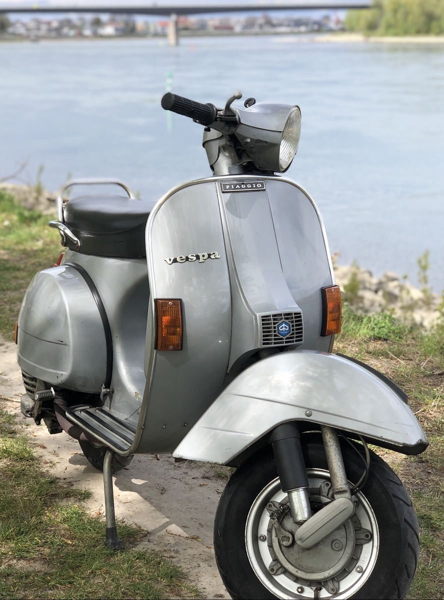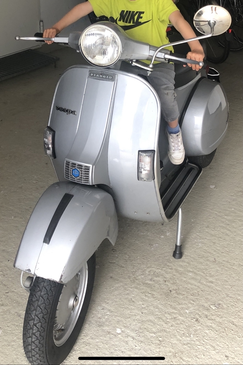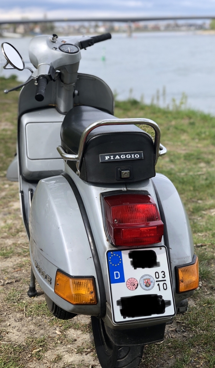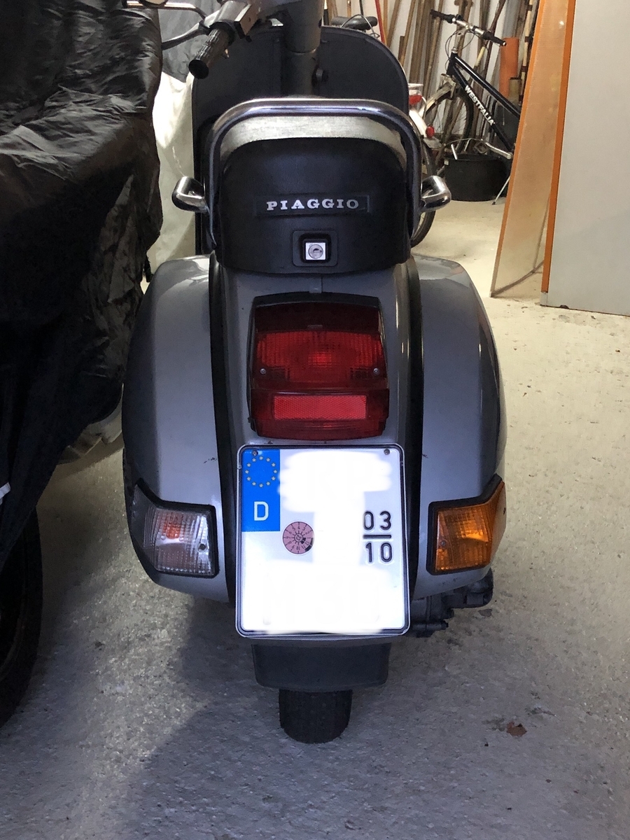 Die Vespa hat ein Saisonkennzeichen und wird nur bei trockenem und warmen Wetter gefahren. Ansonsten steht sie trocken in der Garage.