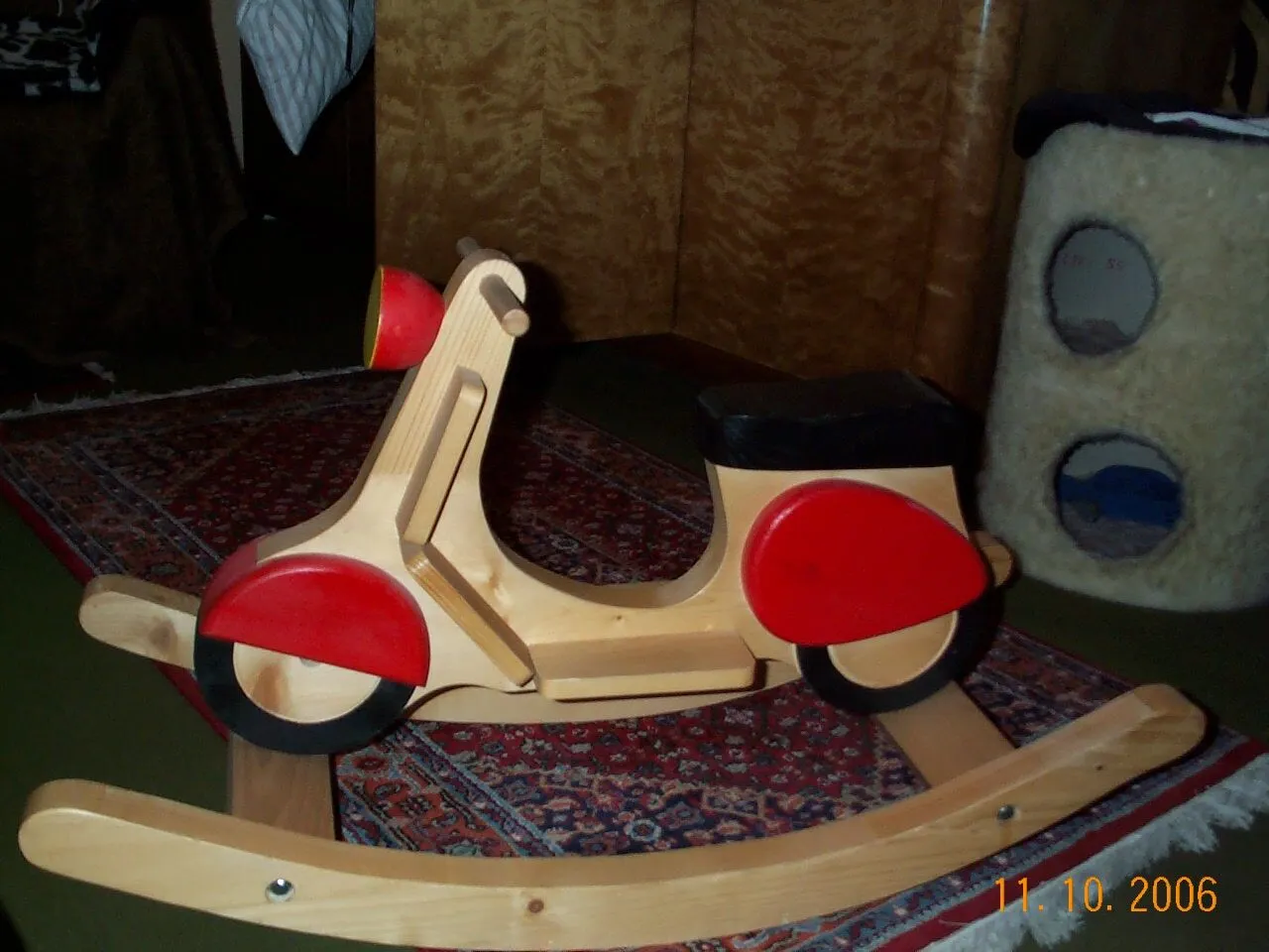 Ich wollte als Anstoss meine Vespa aus Holz zeigen (Schaukelpferd),muß aber erst das Bild bearbeiten,da zu groß.