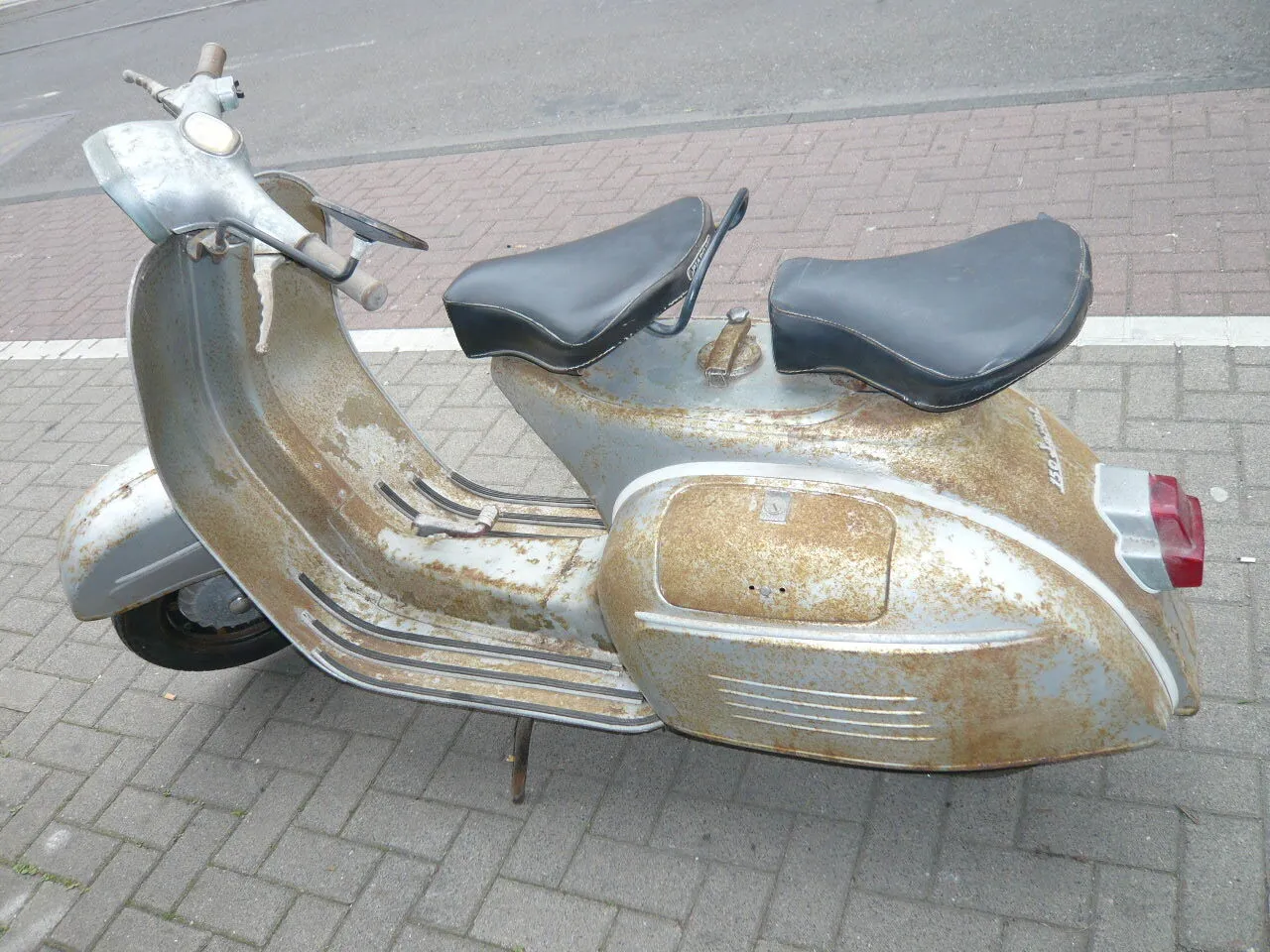 So sah sie aus als ich sie bekommen habe ... latent durch! ...bodenblech musste erneuert werden und einige Schweissarbeiten waren von nöten!Den alten Sprint motor habe ich rausgeworfen (den nehm ich mir wohl diesen winter vor, es darf einem ja nicht langweilig werden) und stattdessen einen relativ jungen 125 PX Motor ohne getrenntschmierung mit einem 177 Pinasco aluzylinder als puff wurde der Sip Road verbaut.Da ich sie jetzt einige Kilometer gefahren bin , kann ich nur sein ...gute entscheidung !
