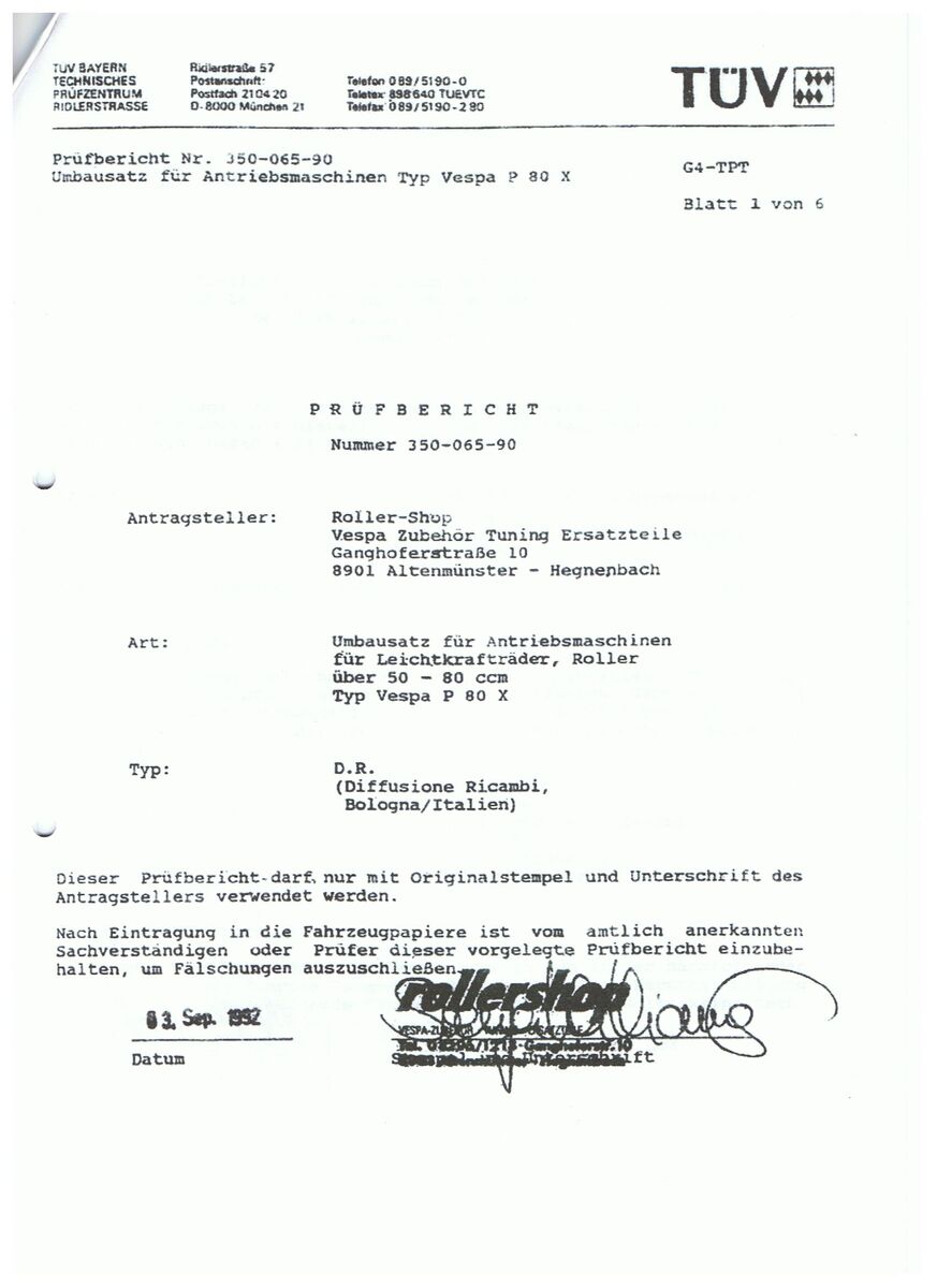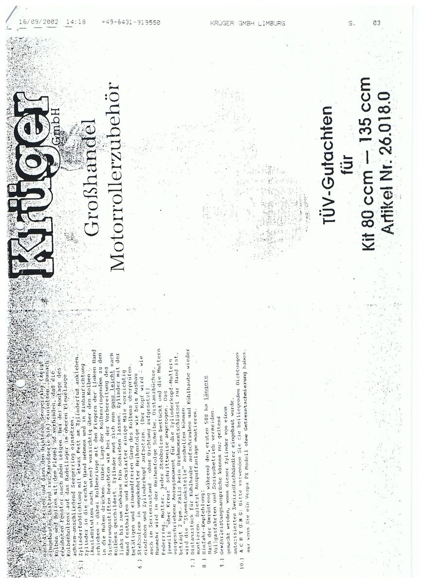 ich kann garnicht verstehen, dass die Umrüstung von 80 ccm auf DR 134 ccm beim TÜV bei Euch Schwierigkeiten macht!