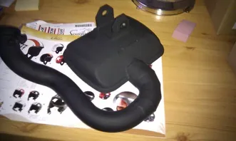 Eine Möglichkeit wäre einfach die hintere Lasche der Auspuffhalterung abflexen, soll angeblich auch nur mit der forderen Lasche halten.