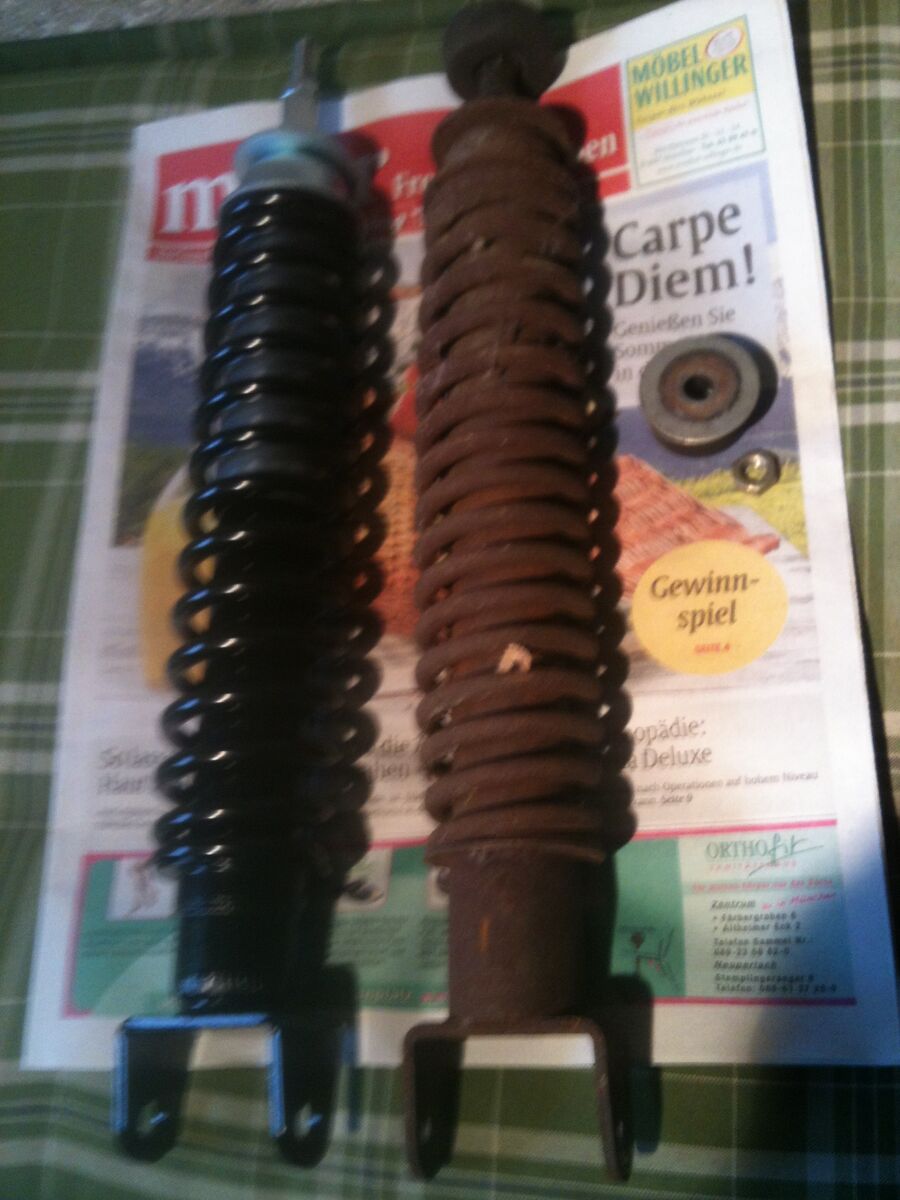 Neue Stioßdämpfer kommen morgen, Seitenklappen aus HH sind da(gebraucht, die fehlten beim Kauf, sind auch schon beim Lacker).