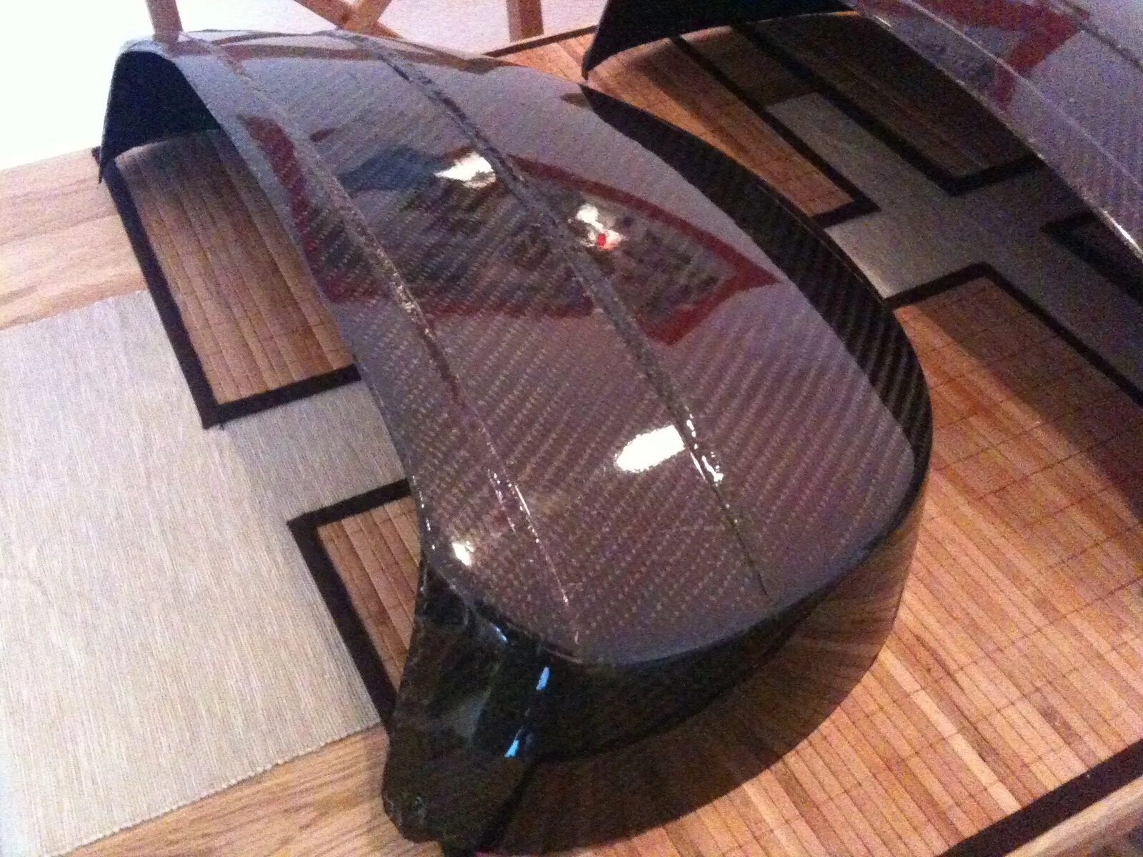 wie gesagt: Das war mein erster Versuch. Ich kann Anfang nächster Woche Bilder in besserer Qualität (war ne alte Kamera) und von meinen aktuellen Carbonbacken reinstellen. Die aktuelle rechte ist echt super geworden. Für die linke härtet grad die Form und nächste Woche ist die Backe dafür dann auch fertig. (Ist aber leider schon reserviert für superkoelle ;)