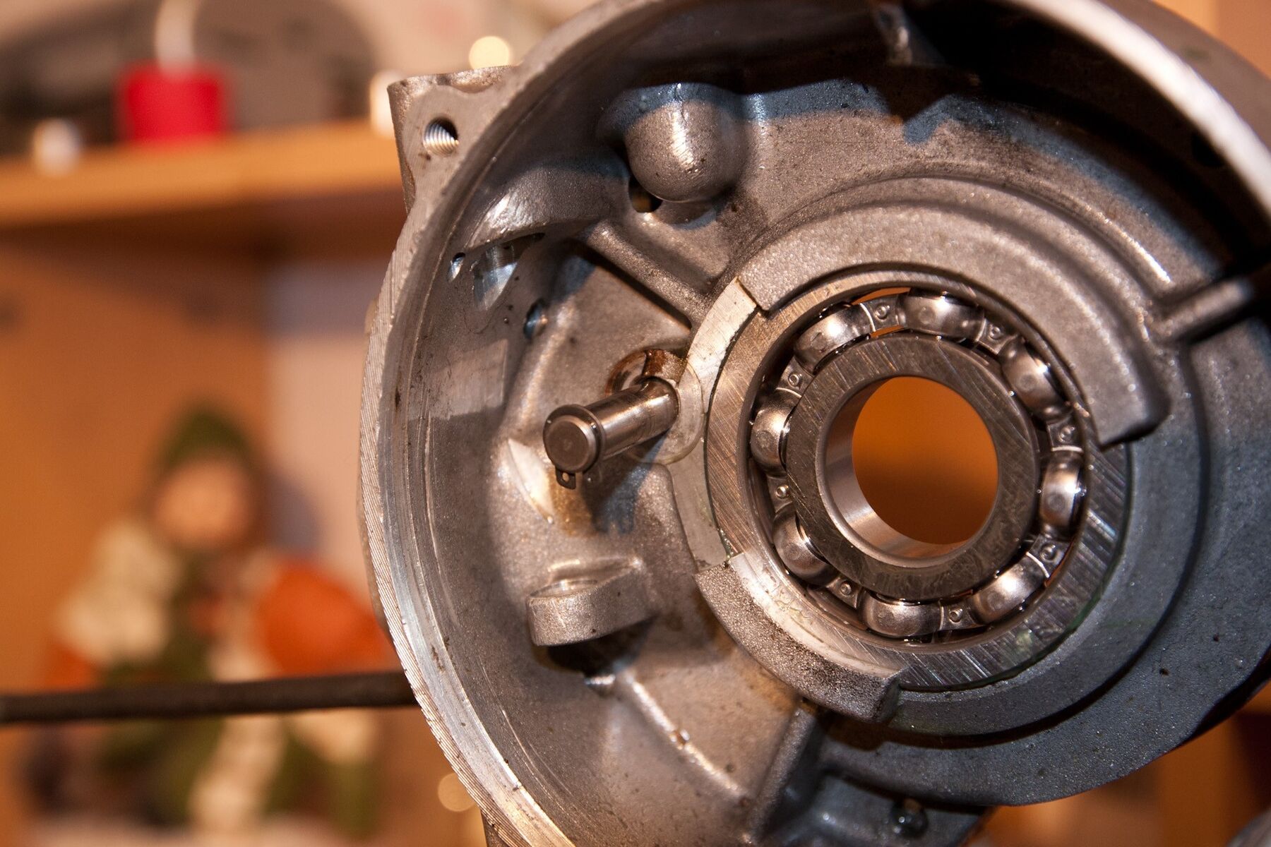 Bei mir ist es aber nicht ganz so schlimm. Ich kann den Bolzen nicht bis ins Kurbelwellengehäuse schieben. Das Loch ist die letzten paar Millimeter kleiner gebohrt.