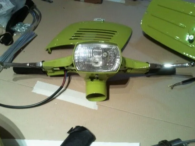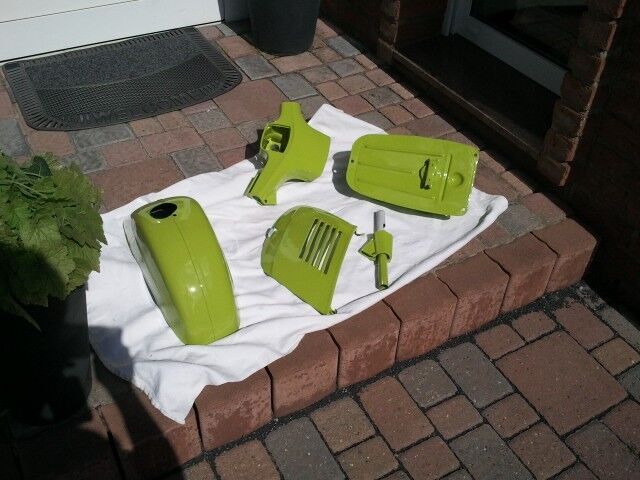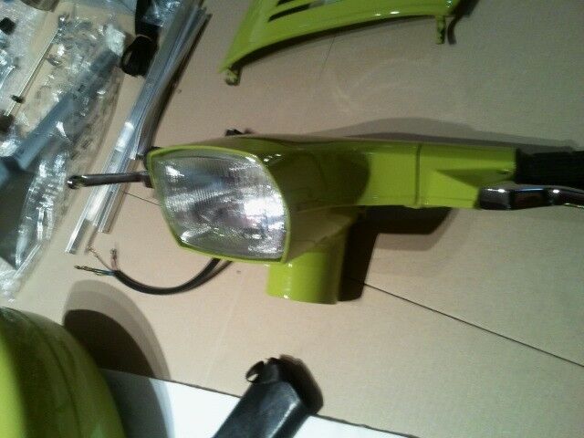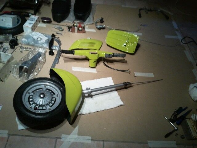 Hab heute wieder viel geschafft, habe den kabelbaum eingezogen und die vorderen schriftzüge befestigt, die meisten züge angeklemmt den Motor eingebaut den Vergaser angeklemmt und den Tank eingebaut. Ausserdem noch die Kaskade montiert und das Rüli drangeschraubt.
