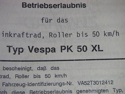 Wie wäre es denn mit folgendem Angebot: Vespa PK 50 XL Erstzulassung 1997, KM 5816, € 550?? Die sieht optisch gut aus und ich habe ihm ne mail geschickt ob alles läuft. Steht halt nichts weiter drin. Auf den Bildern macht die Kleine einen gepflegten Eindruck!