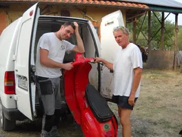 Wo steht diese Vespa N, die täglich als mein "Esel" durch das Gelände kutschiert.....und was geschieht generell auf dem Foto, na, dann ratet mal - euer Michael -