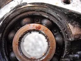 Ich möchte nur mal demonstrieren, wie der Motor innen aussieht, wenn er zwar 40 Jahre mit dem original Simmerring gelaufen ist , aber beim Spalten war es deutlich erkennbar, dass er nicht mehr der beste war.....Innen gabs eine schwarze ölige Schicht von ein paar Milimetern