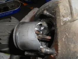 Also ans Werk,Haube runter ,Zylinder runter, und -au weia, das hab ich noch nie gesehen, siehe Fotos, die untere Hälfte des Kolbens fehlt total,