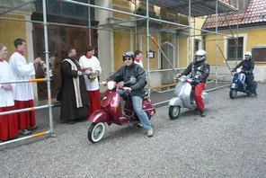 Wenn wir unsere Vespa´s nach Niederaudorf bewegen, werden wir am Kloster Reisach von einem Pater empfangen der dann unsere