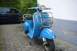 Die vespa hat keine durchrostungen oder groben rost! Das blechkleid ist in einem super zustand,der motor solle mal überholt werden,wenn man sie anschiebt springt sie an und lässt sich schalten und fahren. Es wurden schon ersatzteile beschafft,d.h. Neue trittleisten,bremsen vorne dichtsatz für motor... Die vespa steht schon seid 10 jahre im trockenen und muss jetzt leider weg da ich umziehe und ich da keinen platz mehr dafür habe.sie wird mit original brief verkauft und ihr vorderes licht ist eckig und sie hat eine 4 gangschaltung. Papiere sind vorhanden.