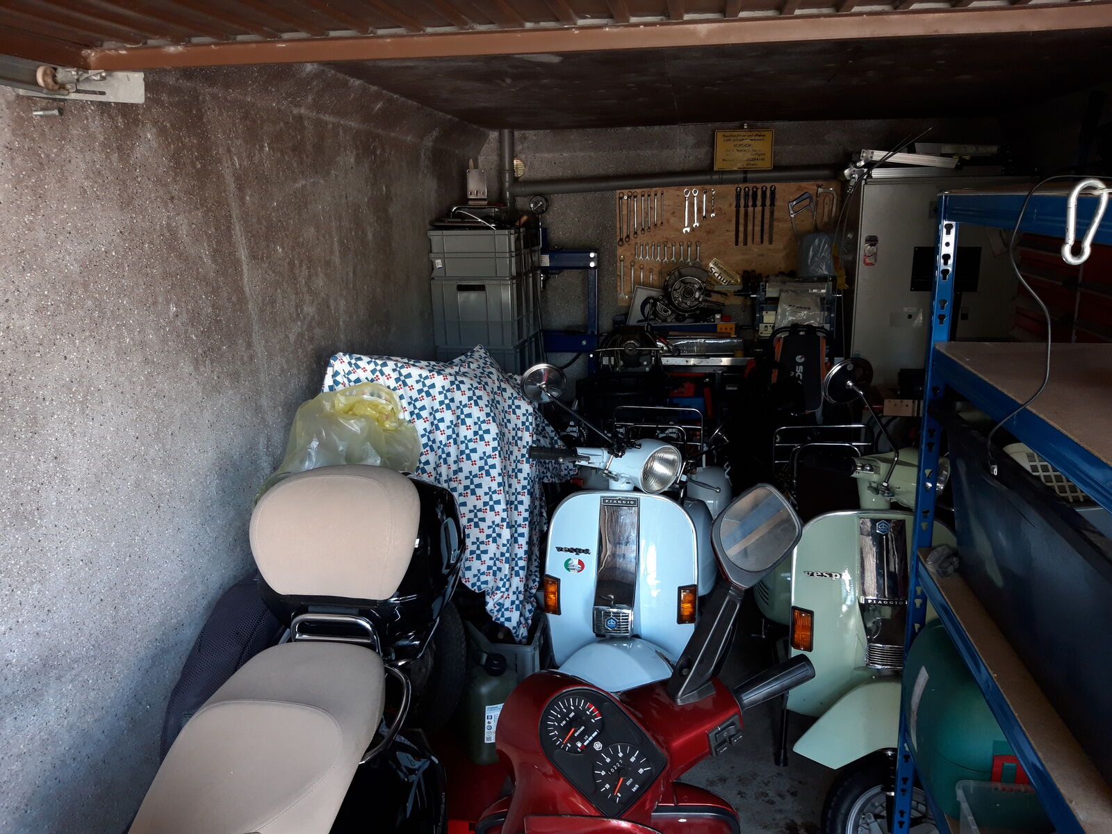 Garage ist voll...na und einen Roller mach ich grad im Wohnzimmer...solange der Motor nicht gestartet wird...sagt meine bessere Hälfte...kann er vorerst bleiben.