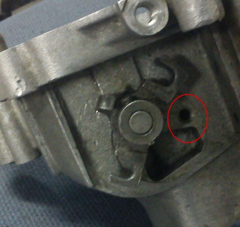 Nach meiner Revision hab ich heut den Motor wieder eingebaut. Aber grad schieb ich Panik, dass ich einen Teil der Schaltgabel zu fixieren vergessen hab. In dem unten markierten Gewinde hab ich nämlich nichts eingeschraubt. Gehört das so, oder darf ich den Motor jetzt nochmal zerlegen?