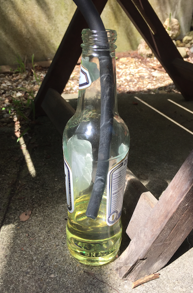 Fast 1/3 einer 0,33l Flasche an Benzin ist in 3h zusammen gekommen. Daraus würde ich mal folgern das die Vespa spätestens nach einer Nacht ein komplett volles Kurbelgehäuse hat und deshalb zu viel Kompression und der Kicker deshalb so schwer geht, das ich keine Umdrehung mehr aufs Polrad krieg.