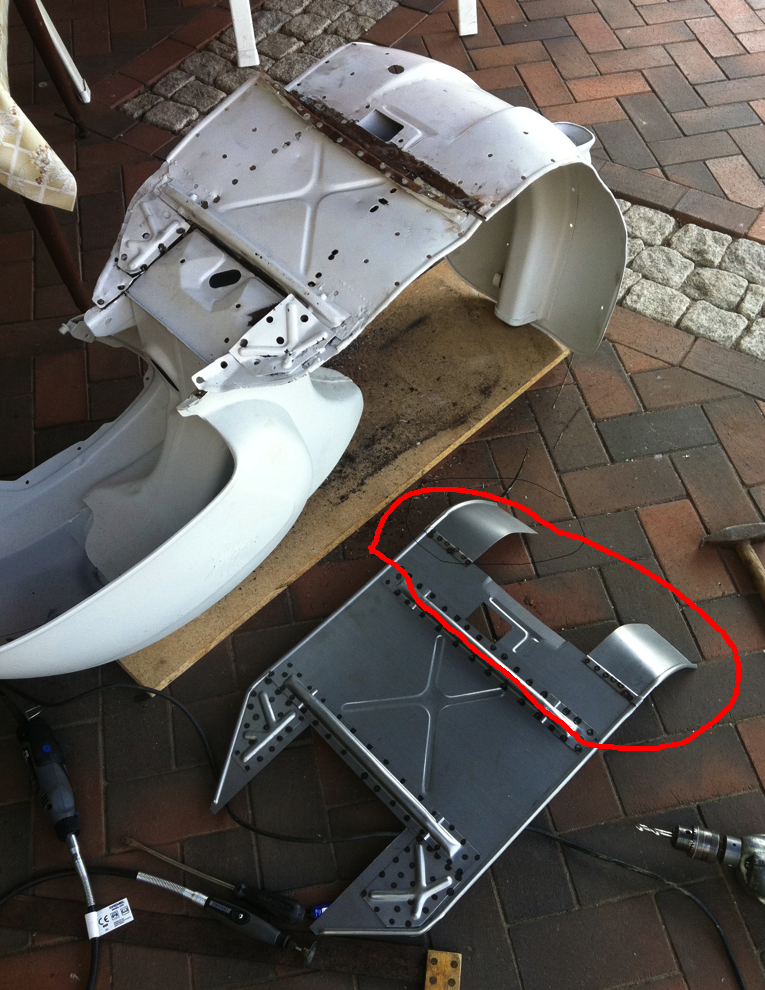 altes trittblech mittig auf höhe der vorderen querstrebe abnehmen und neues ranfummeln... so dass quasi die neue vordere querstrebe als verbindung zwischen alt und neu dient... ham alle verstanden, was ich meine... ![]()