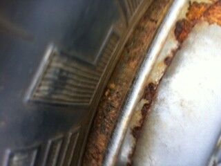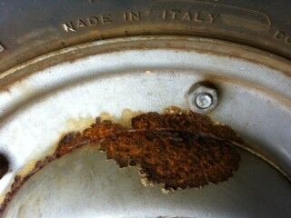 Das Bild Vespa 1 zeigt die Felge mit der Stelle die an meisten mit Rost angegriffen ist.
