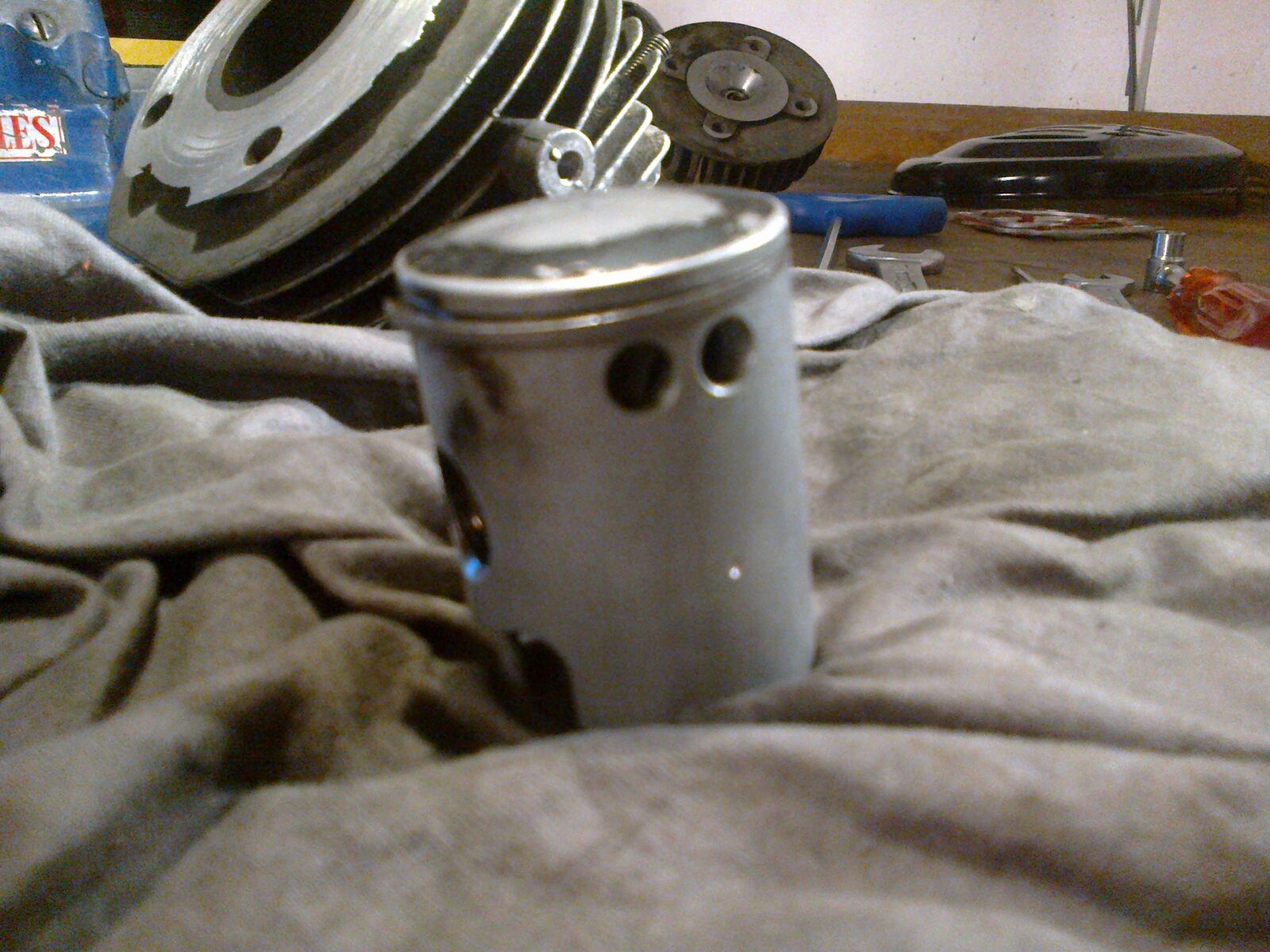 5 min später, 1 mal gekickt ->knack!! -> Kolbenring im Auslass eingehakt und sauber abgebrochen.
