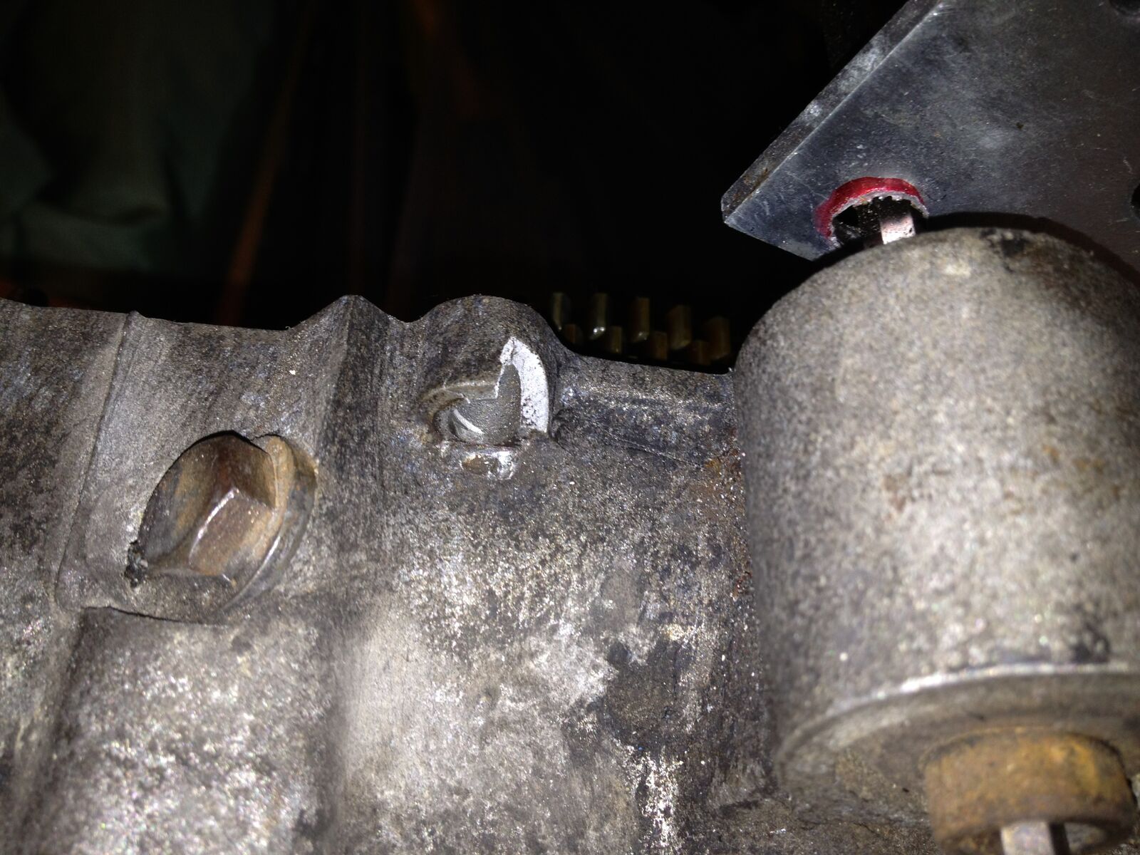Auf der Seite des Motorblocks ist nur ein Kratzer im Metall, das ist kein Riß. Aber auf der Ösenseite ist tatsächlich ein ganzer feiner, aber durchgehender Haarriß, d.h. der restliche vorstehende Teil der Öse wird auf jeden Fall auch noch abplatzen