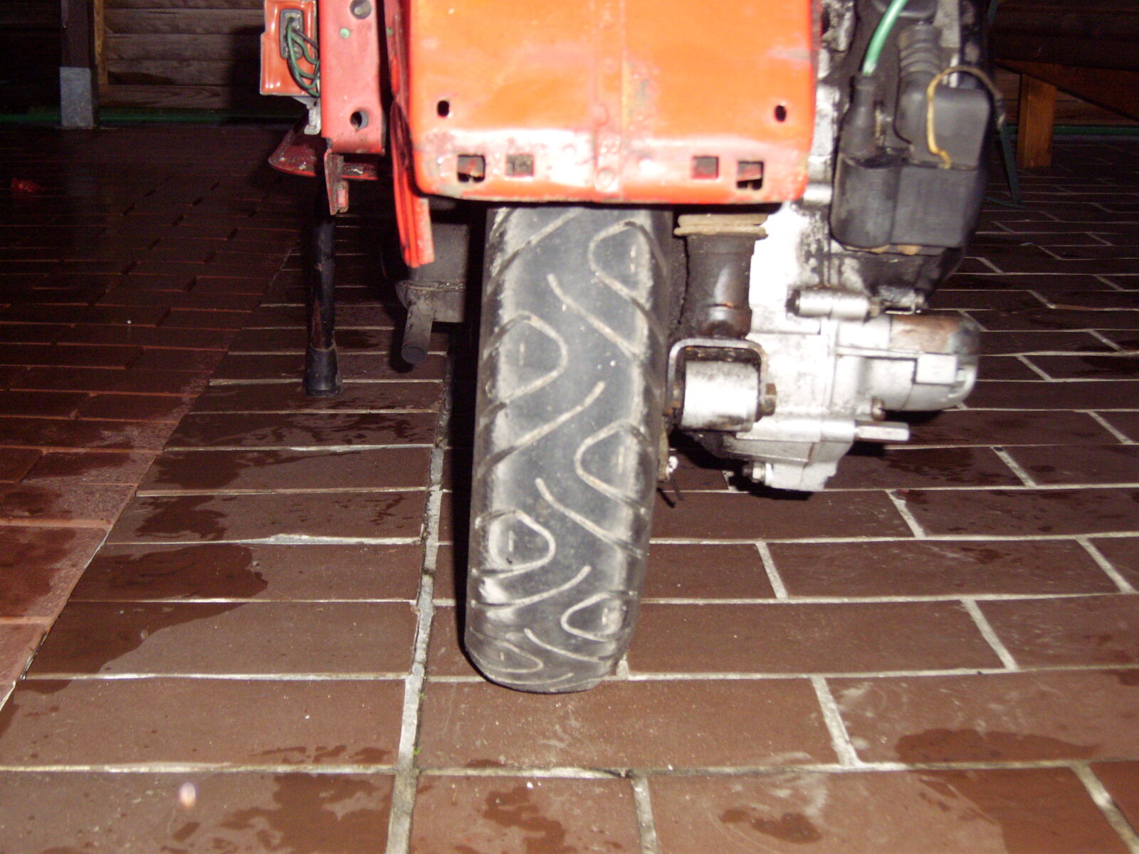 Also, die Laufspuren kann ich rückstandslos wegwischen, wenn ich dann den Motor auch nur im Standgas kurz laufen lasse, kann ich sehen, wie sich das Öl an der markierten Stelle sammelt und dan runter läuft.