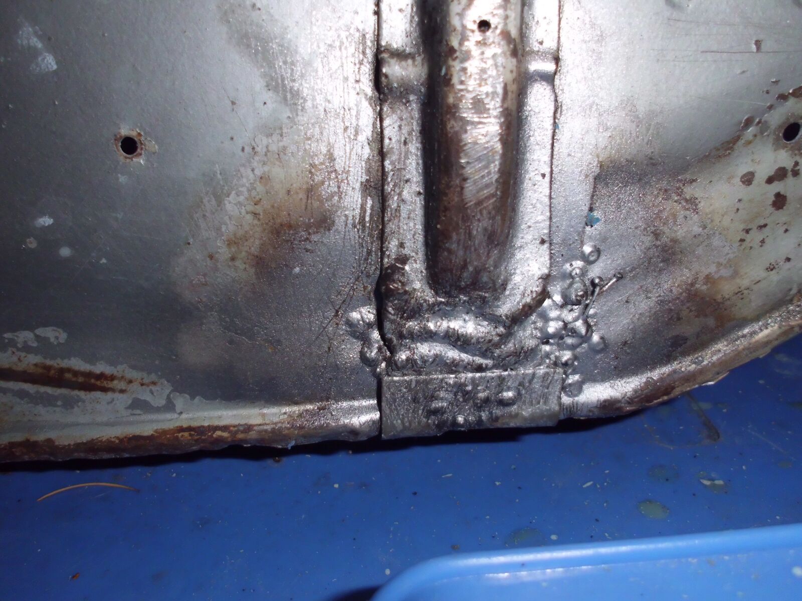 Als nächstes werde ich das Beinschild zurechtdengeln/ biegen, dann den Riß am Beiinschild und kleine Risse unten an der linken Back schweißen / schweißen lassen. Dann ein bisschen Polieren und mit Wachs versiegeln und dann Owatrol für das Radhaus Motorraum Unterboden und blancke Stellen verwenden. Der Hohlraum sieht auf dem Foto doch relativ rostig aus.. Einfach Fluid Film reim oder vorher noch Rost entfernen?