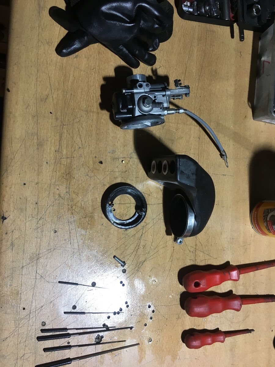 So, nun gings der "Kleinen" an die Wäsche, ist wieder alles zusammen und Kicker geht wieder! Allerdings macht der Vergaser Probleme, läuft, aber bei Gas zurück hängt sie noch 2-3 Sekunden auf Drehzahl! Fllzring ist drin und bei Standgas läuft sie sauber, hab den Luftfilter, oder was immer dieses Scheiß Kunststoffteil für einen Zweck erfüllt ( ist nicht Mal Kraftstoff resistent ) abgenommen und dabei viel es auseinander, gibt's da was Solideres? Anbei Fotos und warte auf eure Empfehlungen, Grüße Michi