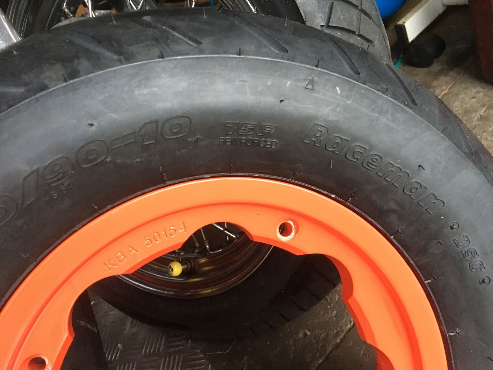 ...hab noch 2 , glaub allerdings 130 80 10 auf roten Lambretta Alufelgen, sind montiert aus ner Falschbestellung, gehen aber nur mit Sprenstoff wieder runter...