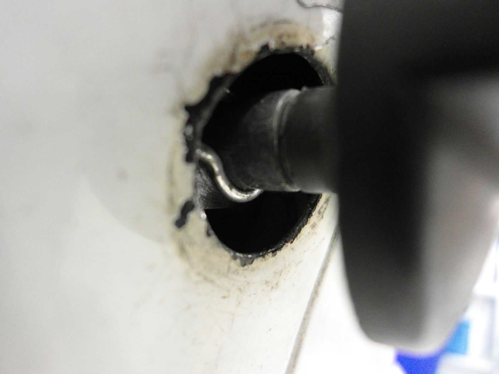 Dann kannst Du entweder mit einem entsprechenden Spezialschlüssel hinter den Drehnknopf "fassen" und den dort vorhandenen Sicherungssplint entfernen, oder Du nimmst ne Spitzzange und etwas Geduld, damit geht's dann auch. Dann kannst Du den Drehknopf abziehen und den Tank ein Stück herausziehen. Du siehst dann den eigentlichen Benzinhahn mit Benzinschlauch. Löse die Schelle und nimm den Tank heraus. Der Benzinhahn kann dann herausgeschraubt und inspiziert werden. Achja...VORHER BENZIN ABLASSEN!!!