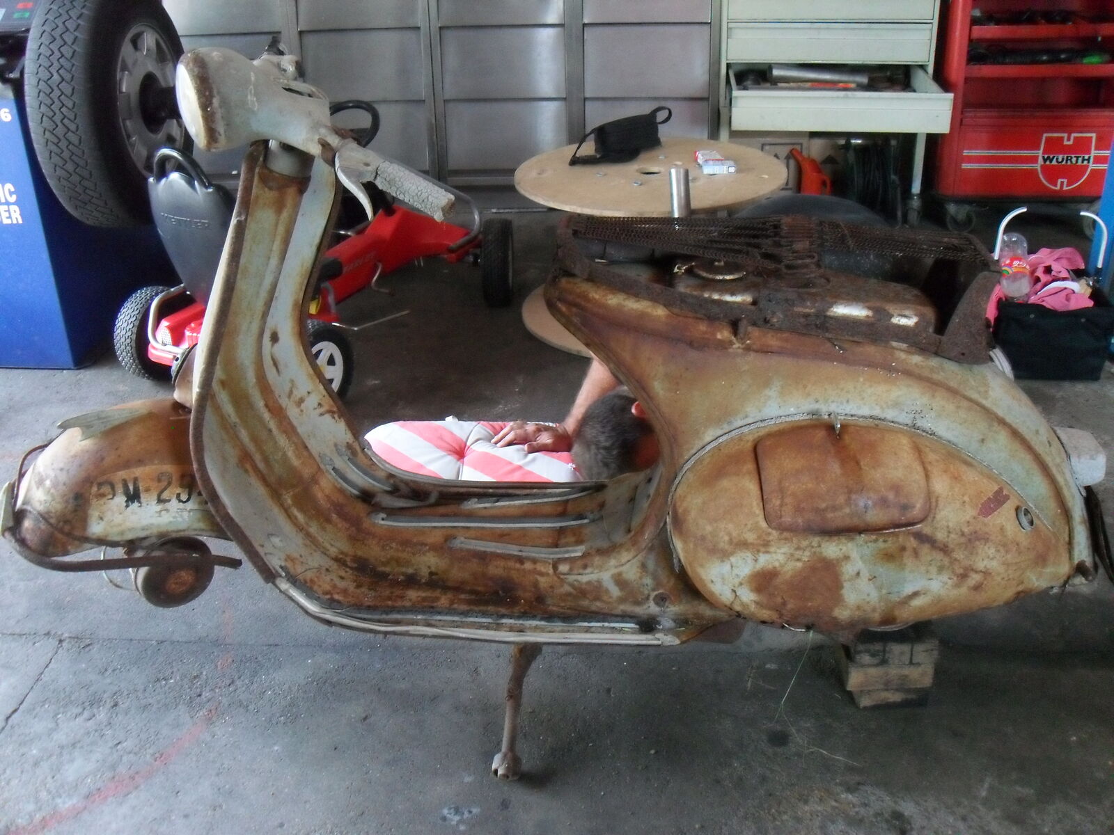 ich bin ein absoluter Neuling, was die Vespa Modelle betrifft. Nun habe ich aber aus dem Nachlass meines Opas eine alte, nicht mehr so gut erhaltene, Vespa bekommen. Was könnte das für ein Modell sein und um welches Baujahr könnte es sich handeln? Wäre dankbar für Eure Antworten.