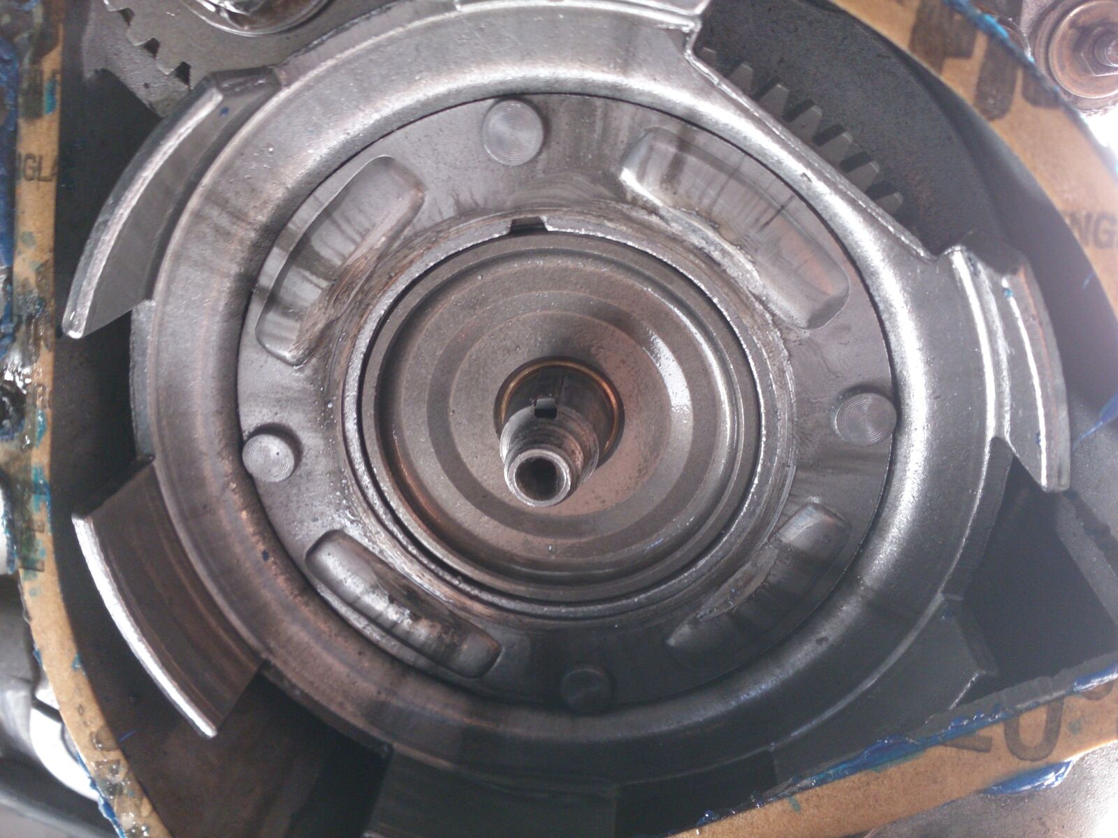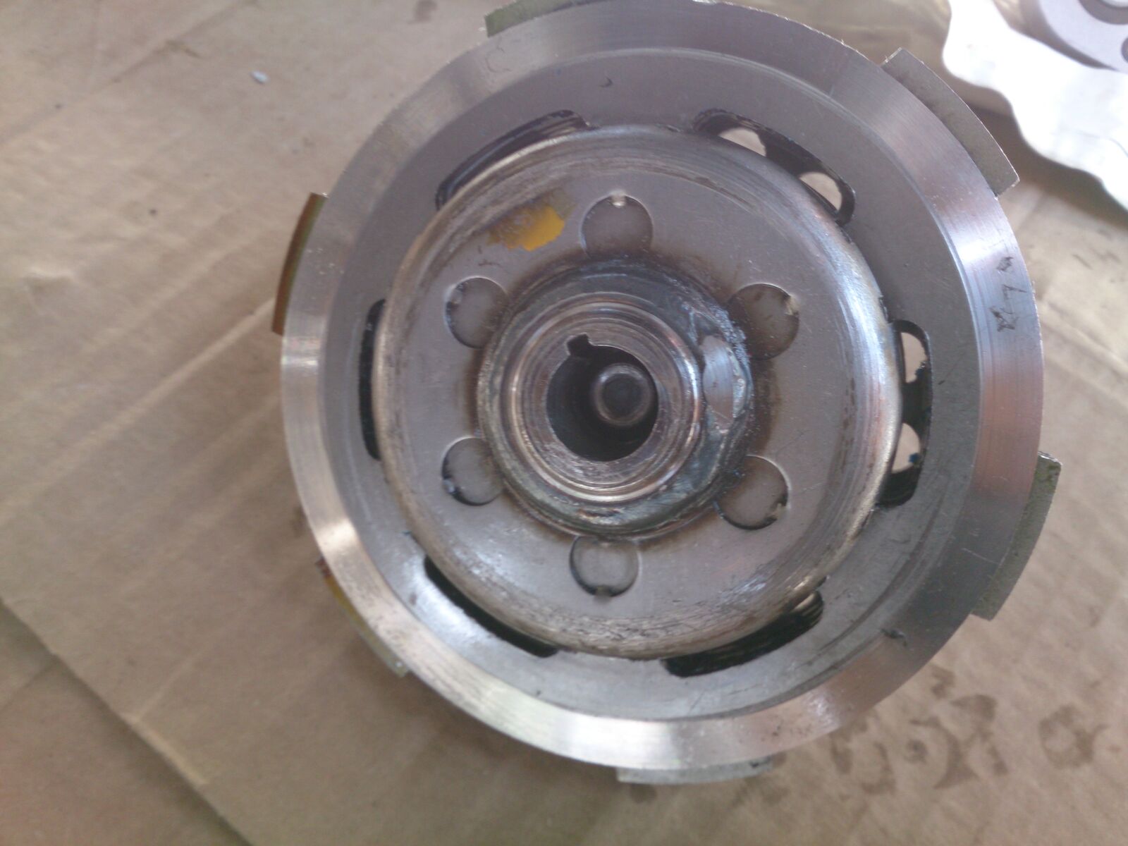 ...hab die kupplung schon aufgehabt. die halterung der beläge hat sich mit gewalt in das primär eingearbeitet,daraufhin habe ich und mein vater etwas material mit der flex abgenommen und alles wieder zusammengebaut.