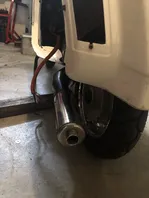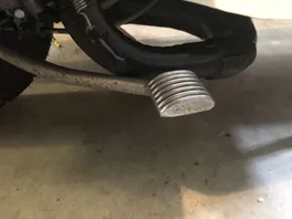 Das Problem liegt augenscheinlich eher am Auspuff, bei näherem Betrachten hängt der Kicker auch zu tief. Da stimmt was nicht.