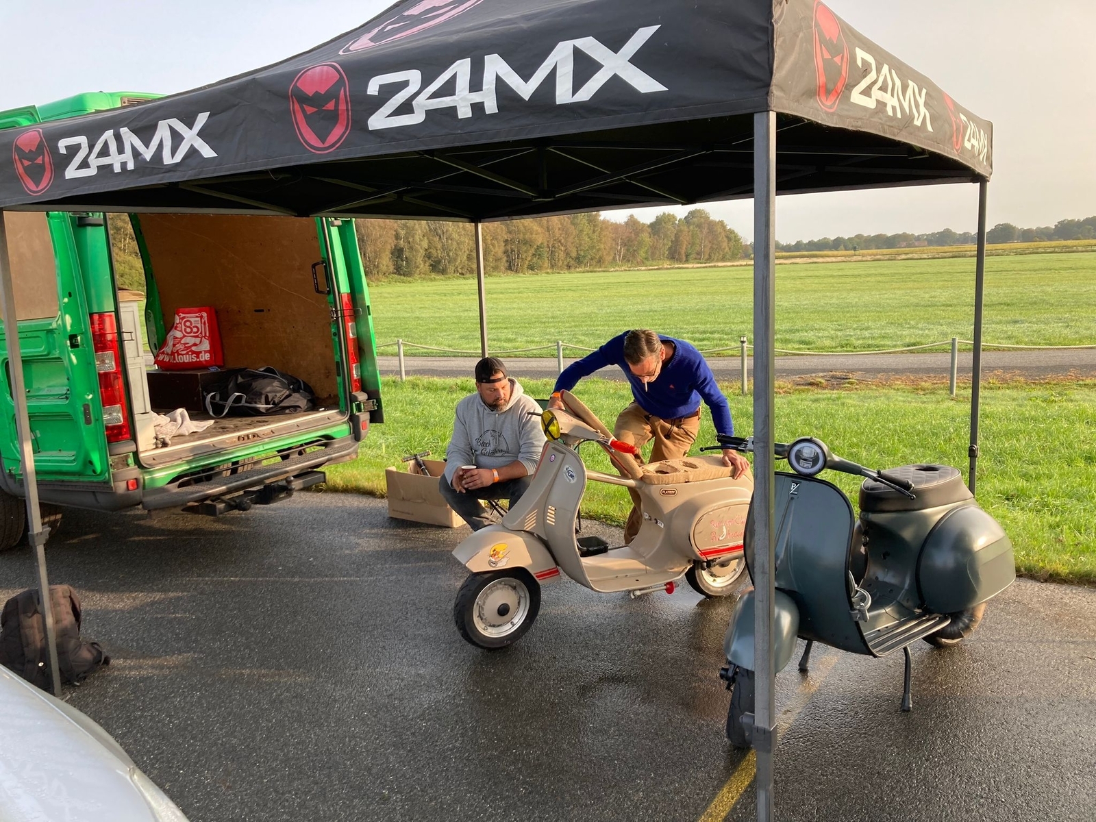 Allerdings war mir dabei so dermaßen die Zeit weggelaufen das während meine Buddies sich schon am Campground des anstehenden Vesbeachi-Blechrollertreffens eingerichtet hatten, ich noch nicht ganz fertig mit allem war ![]()