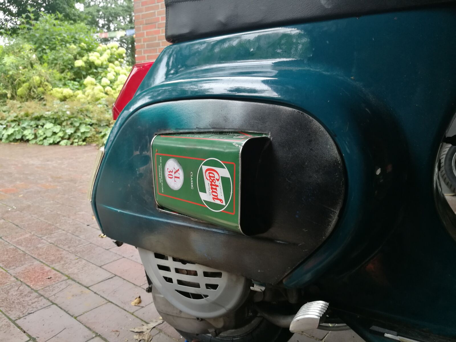 Da hat echt son komischer Typ an nem Puchrahmen den Tank zugeschweißt und nen Melkmaschinentank aufn Gepäckträger geschnallt! Was gibt dat für Menschen und ich solls wieder richten, toll...