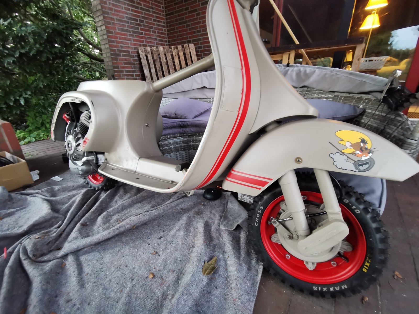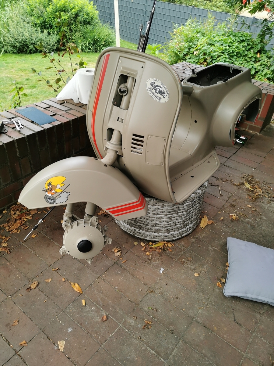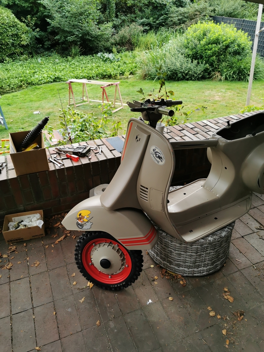 Der Sommer war vorbei und das Moped stand halb fertig draußen.