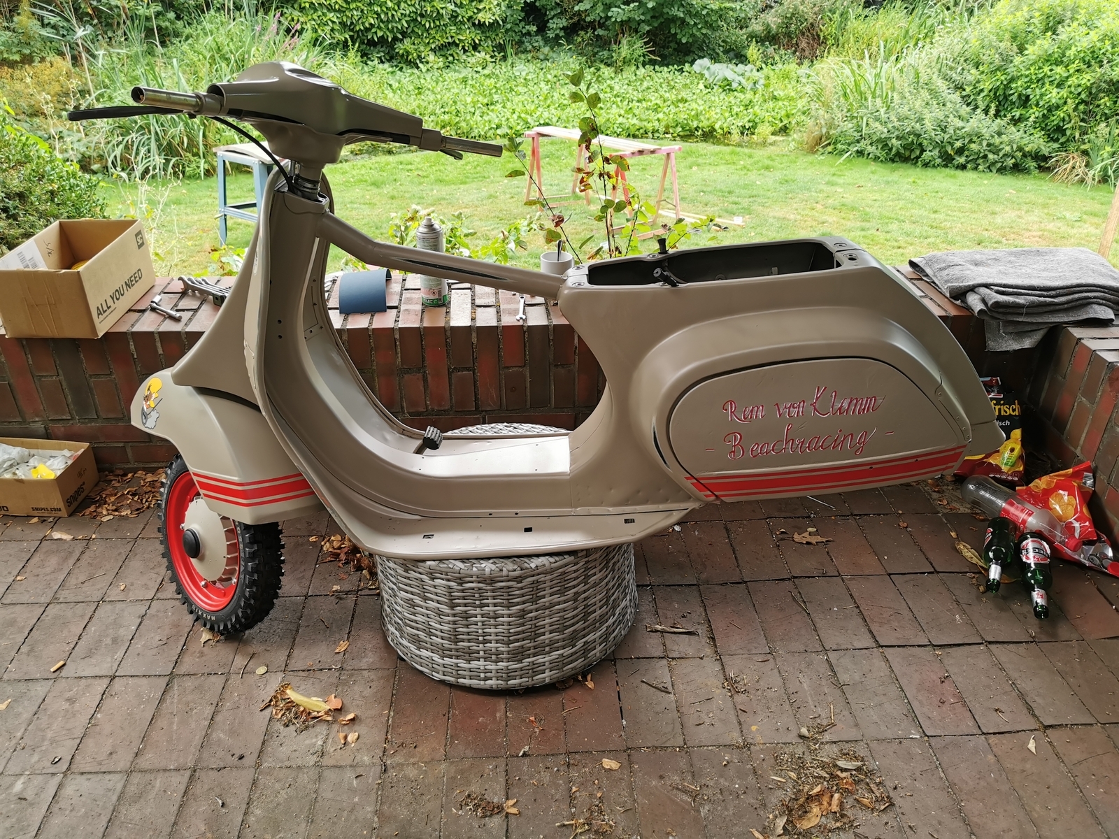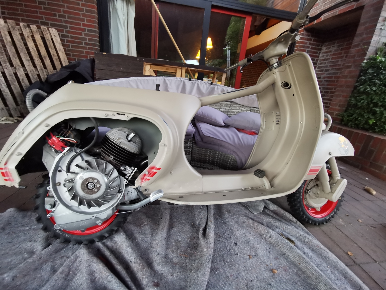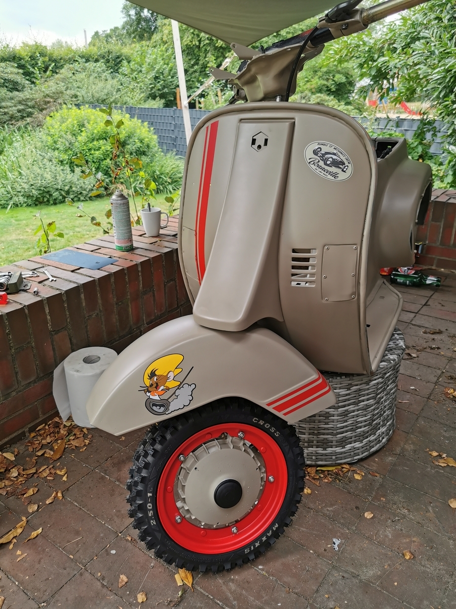 Der Sommer war vorbei und das Moped stand halb fertig draußen.