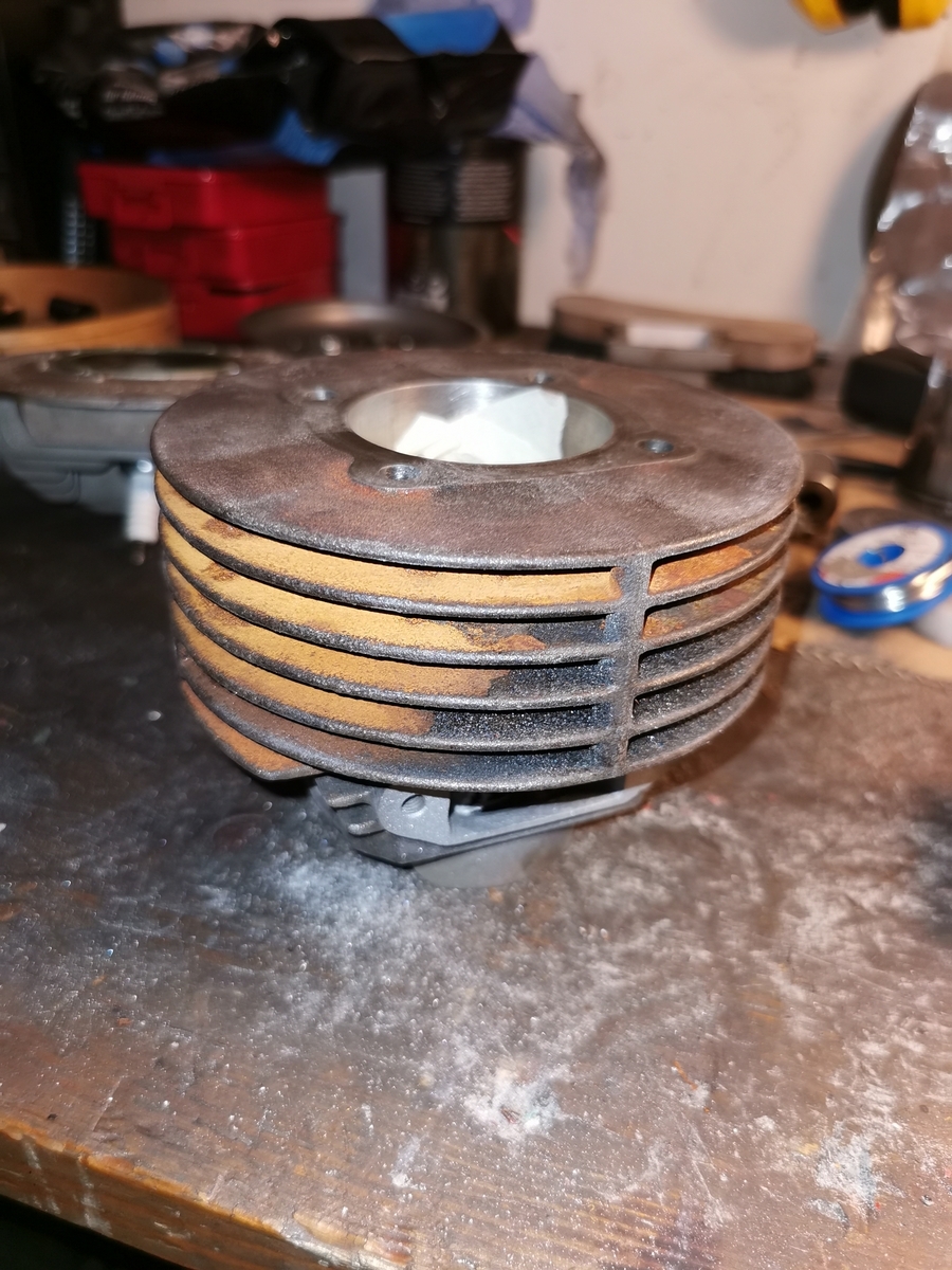 Natürlich musste der Zylinder darauf auch angepasst. Dazu musste ich eine Kühlrippe entfernen und als Dichtfläche nutzen.