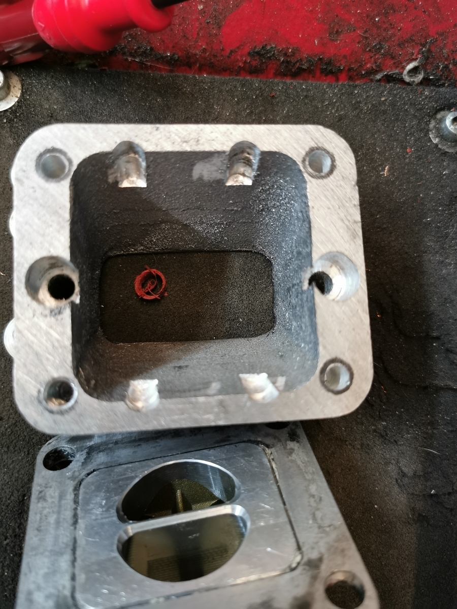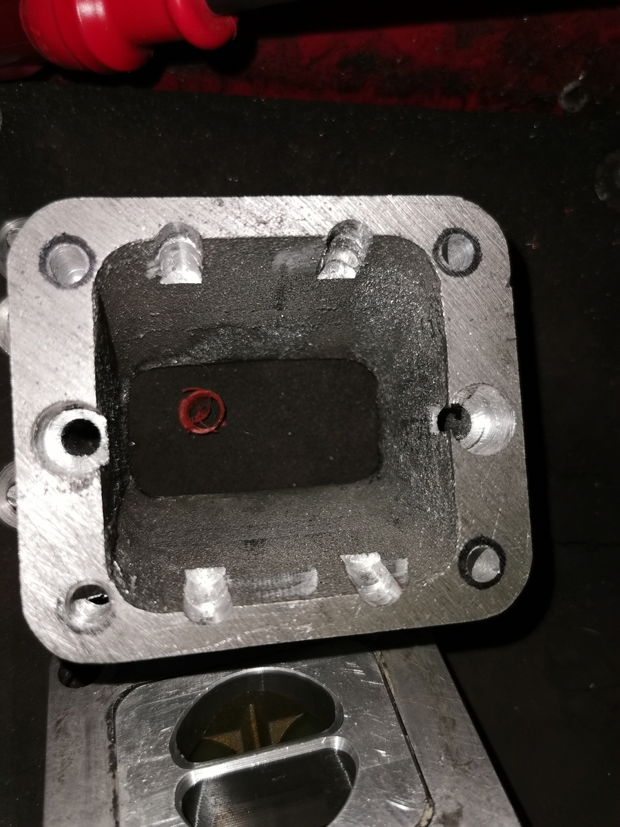 Um etwas mehr Füllung zu generieren bohrte ich mich vom Einlass zu den Überströmern durch. Dabei brach ich auf beiden Seiten zu den Stehbolzenbohrungen durch. Um es kurz zu machen, ich habe es gebuchst, es war aber nicht vernünftig abzudichten.