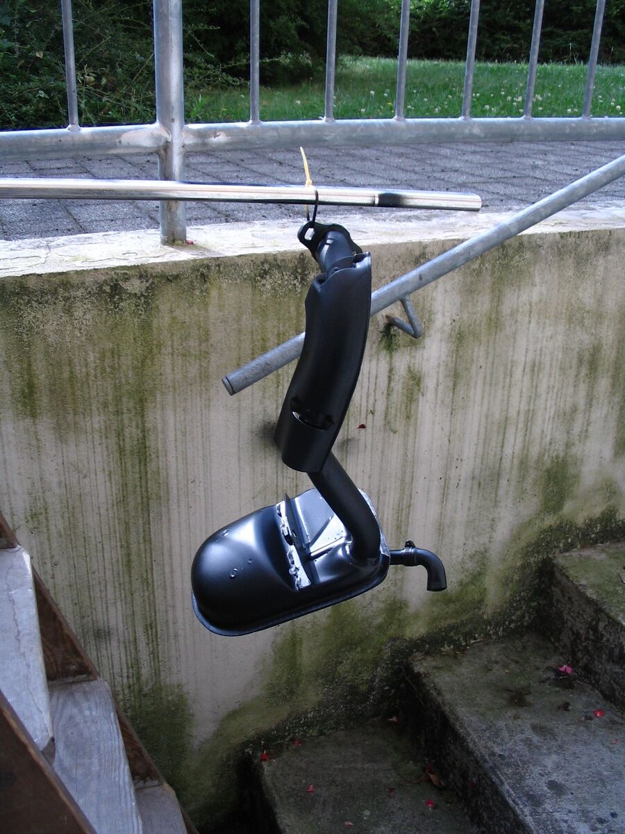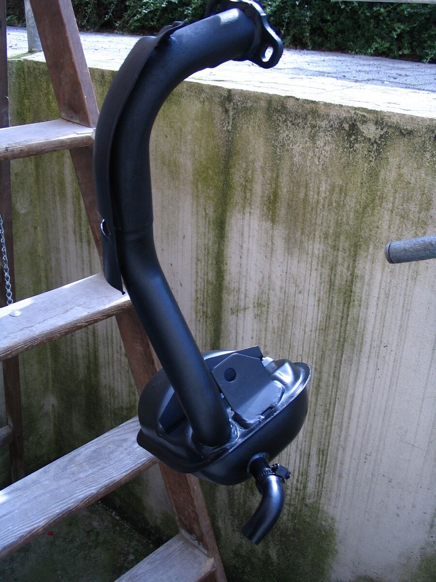 Problem mit dem Öl hatte ich auch, trotz vollsynthetik und optimalem Kerzenbild. Hab Folgendes gemacht, Kupferwinkel 90° aus dem Baumarkt und ne Schlauchschelle. Der Winkel ist ursprünglich für Heizungsbau gedacht. Die Durchmesser der Winkel sind genormt und etwas größer als der Puff, auch beim Sitoplus. Einfach 2 vertikale Schnitte mit der Eisensäge rein, Schelle drüber, auf den Puff stecken und Schelle anziehen. Bei Belieben noch etwas Auspufflack drauf, fertig. Die Soße fliegt jetz im 90°-Winkel von der Vespa links weg....