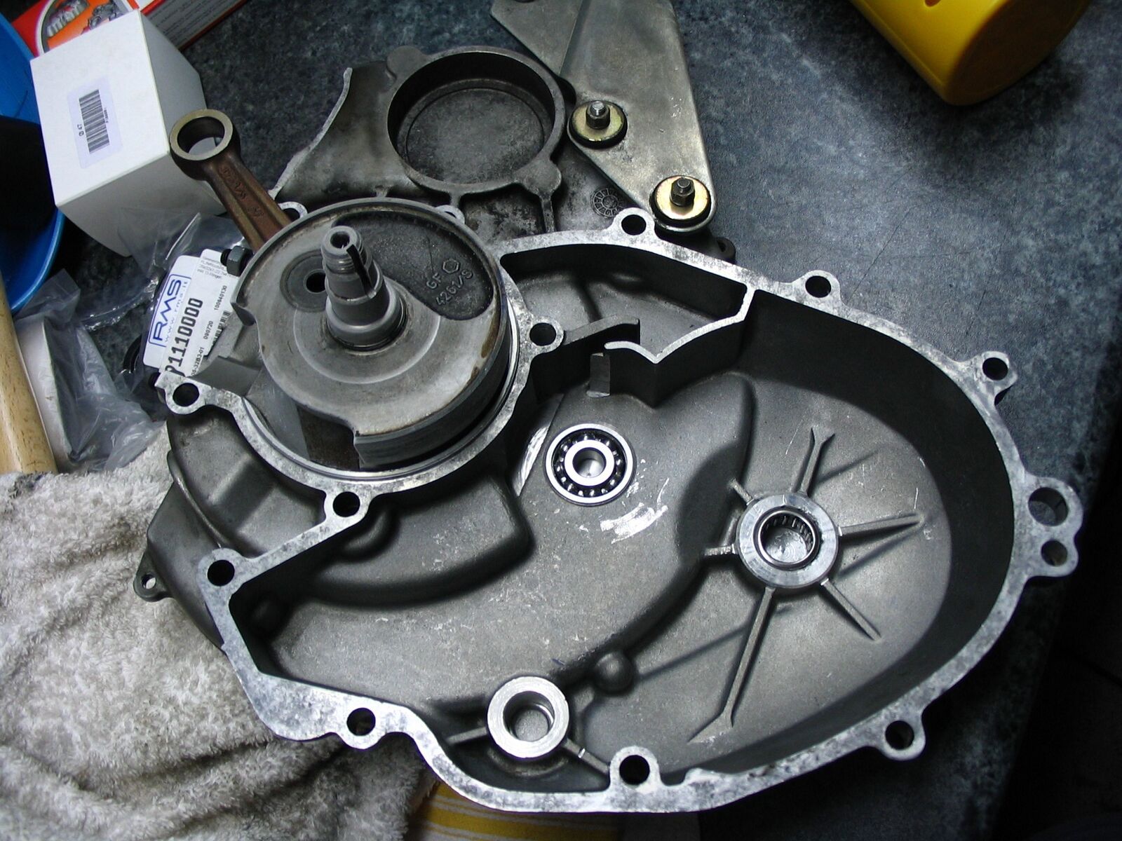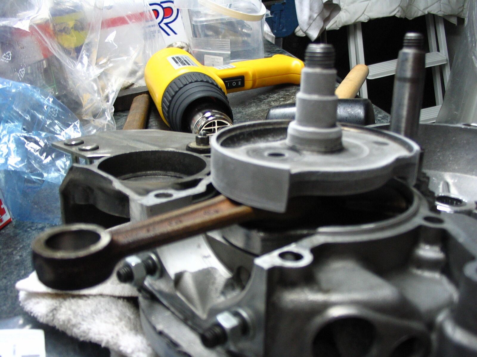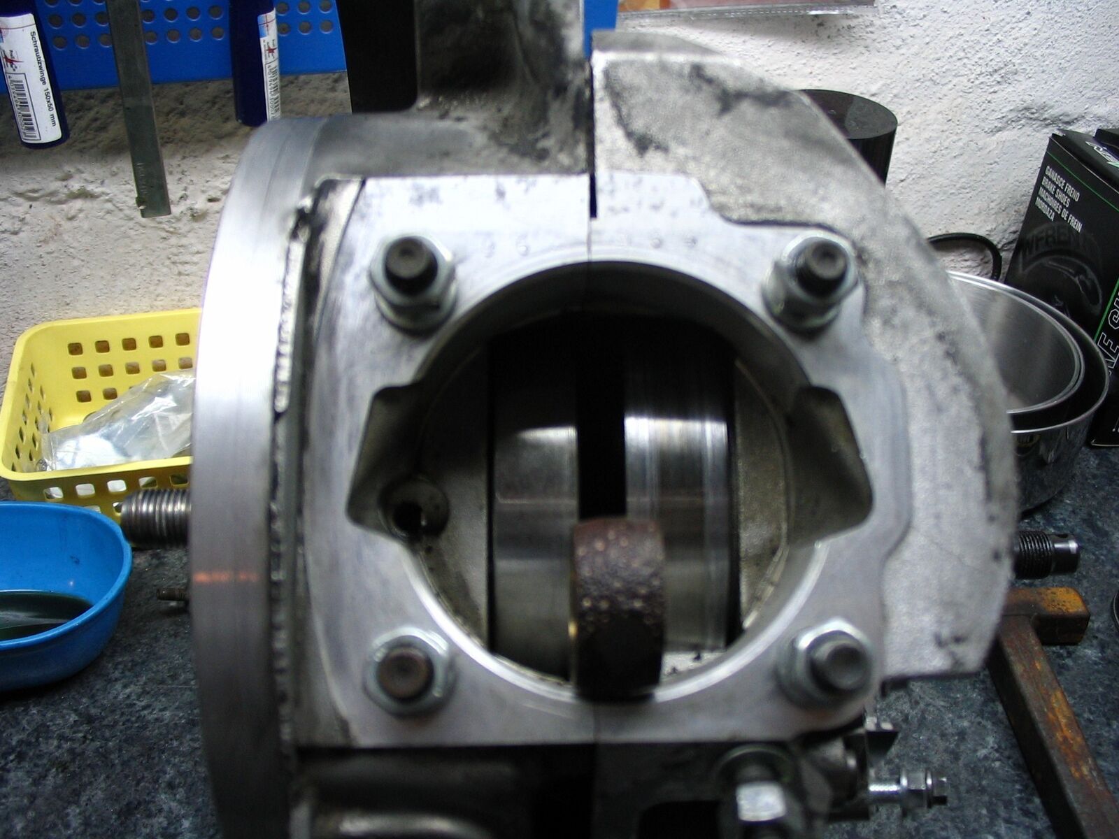 - jetzt machst deine hälften fertig für den zusammenbau. in dem zusammenhang kommt die kurbelwelle (aus dem eisfach) in das erhitzte limaseitige lager. das plumst (fast) rein!