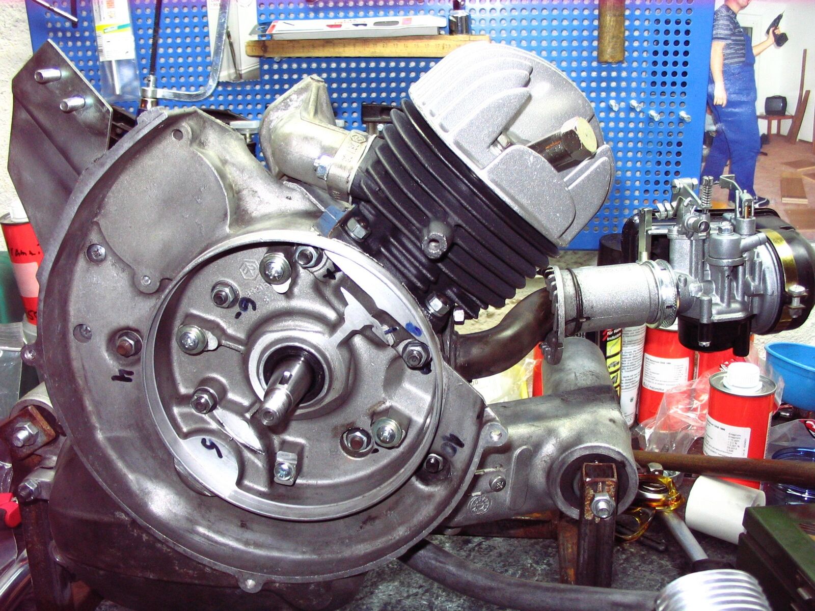 kerze staubtrocken? d.h. das keinerlei gemisch im zyli landet - ergo vergaser raus alle löcher und düsen durchpusten und danach gleich noch schauen ob vom tank der sprit schon in den gaser läuft. wenn nicht an der spritzufuhr basteln