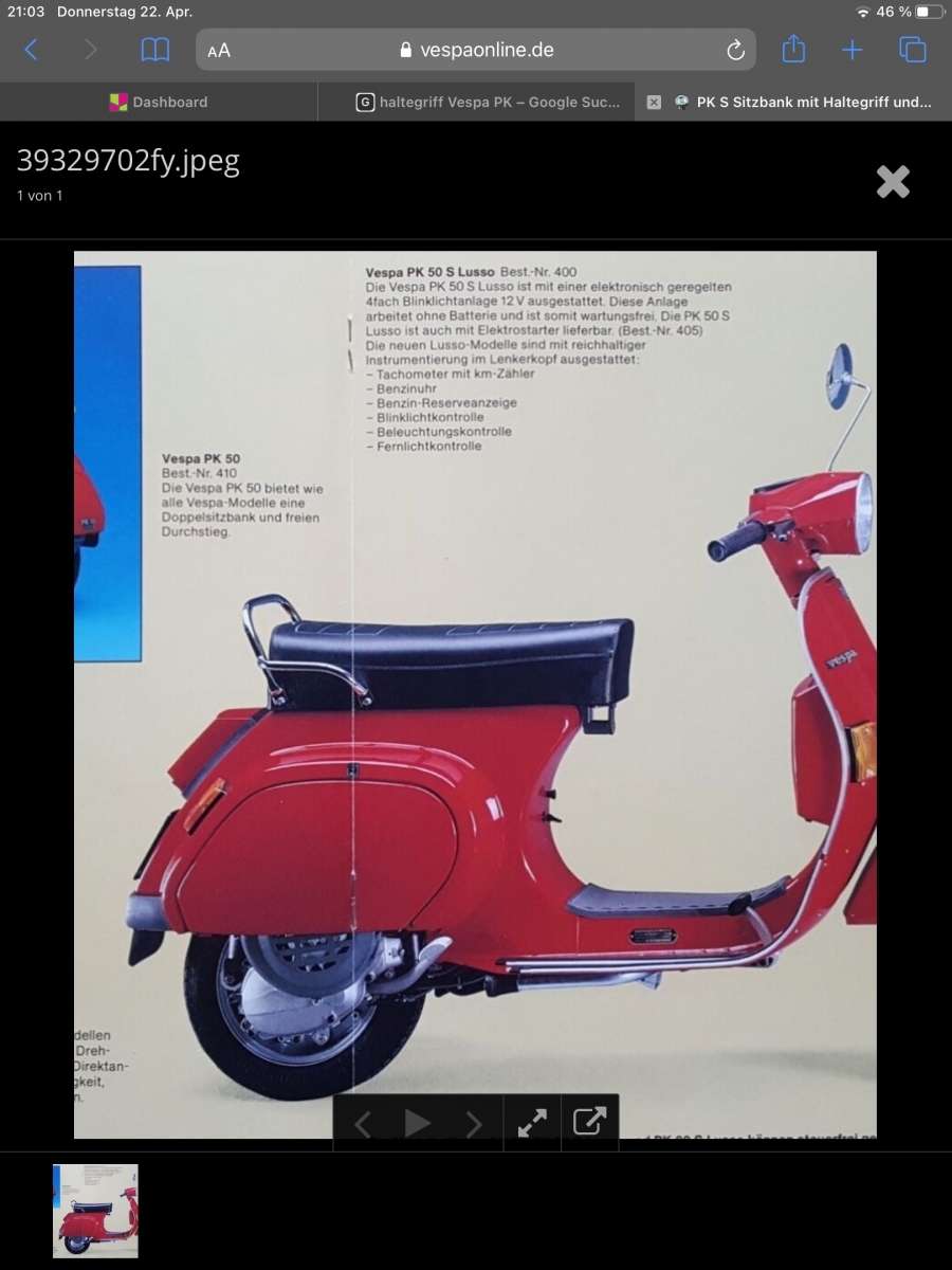 Hallo ich suche eine verchromten ( evt. auch schwarzen) Haltebügel für eine Vespa PK—S